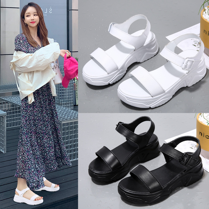 스포츠 샌들 여성용 2021 여름 크로스 보더 2 층 가죽 캐주얼 웨지 아빠 신발 플랫폼 단독 샌들스토어 가기