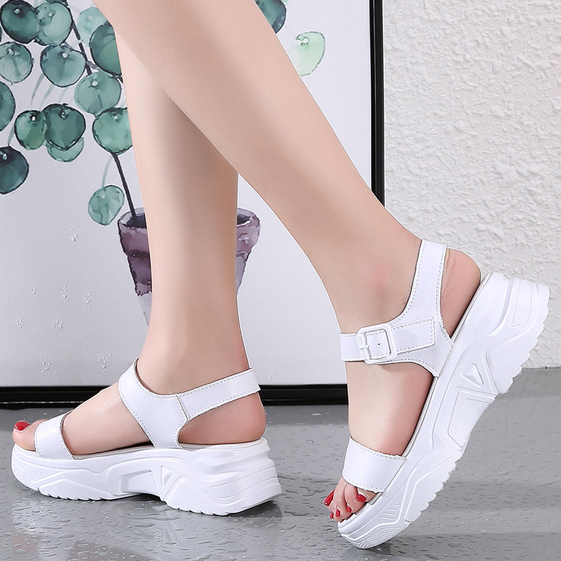 스포츠 샌들 여성용 2021 여름 크로스 보더 2 층 가죽 캐주얼 웨지 아빠 신발 플랫폼 단독 샌들