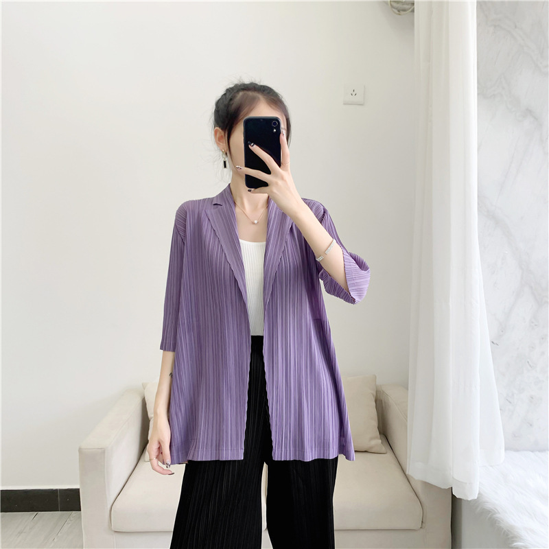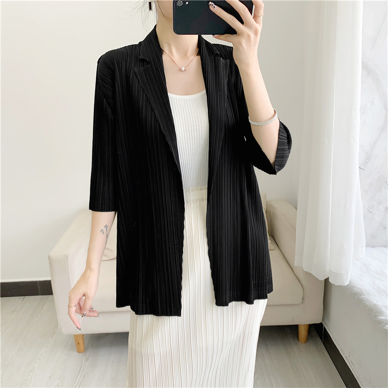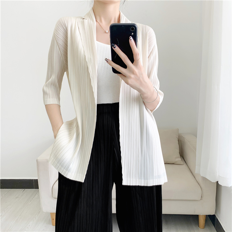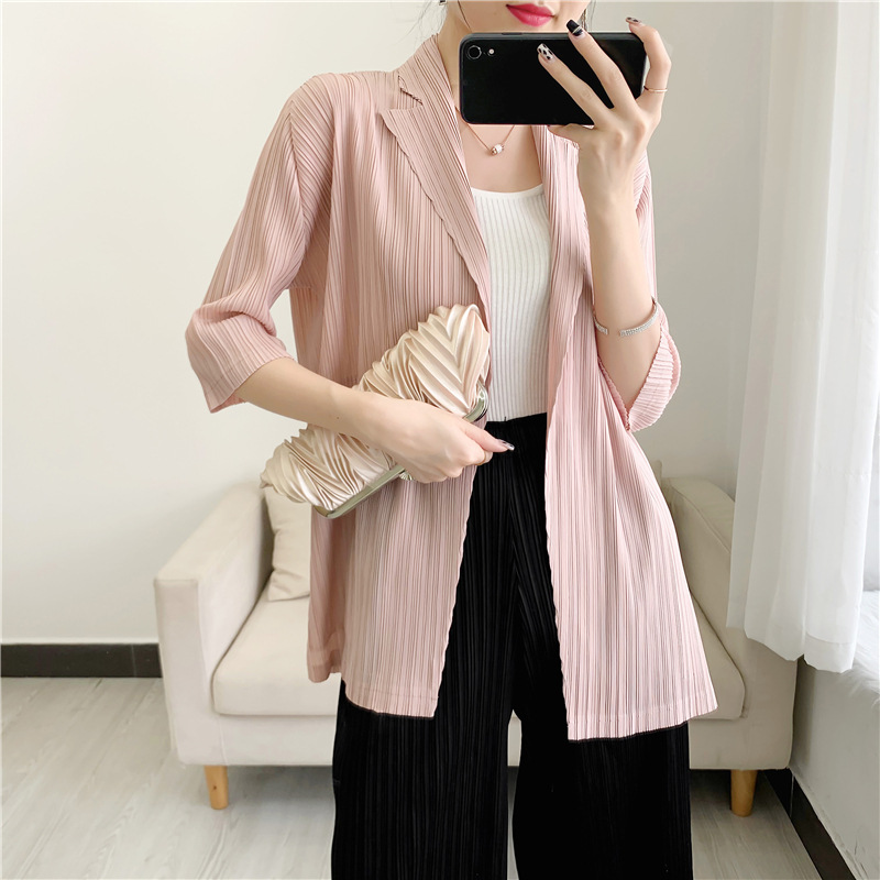주름 작은 세트 7 점 소매 재킷 여성의 편안한 캐주얼 탑 우아한 우아한 주름 옷 틈새 디자인