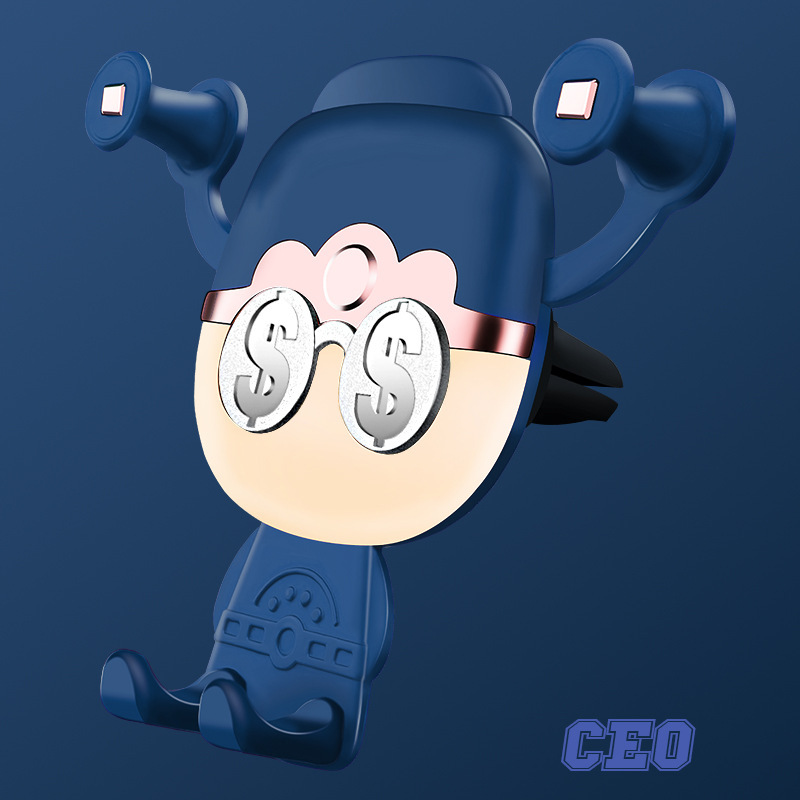 부의 신은 자동차 휴대 전화 홀더의 공기 배출구로 운전합니다. 자동차용 자동차 지지대 프레임과 자동차용 휴대폰 거치대 내비게이션 프레임