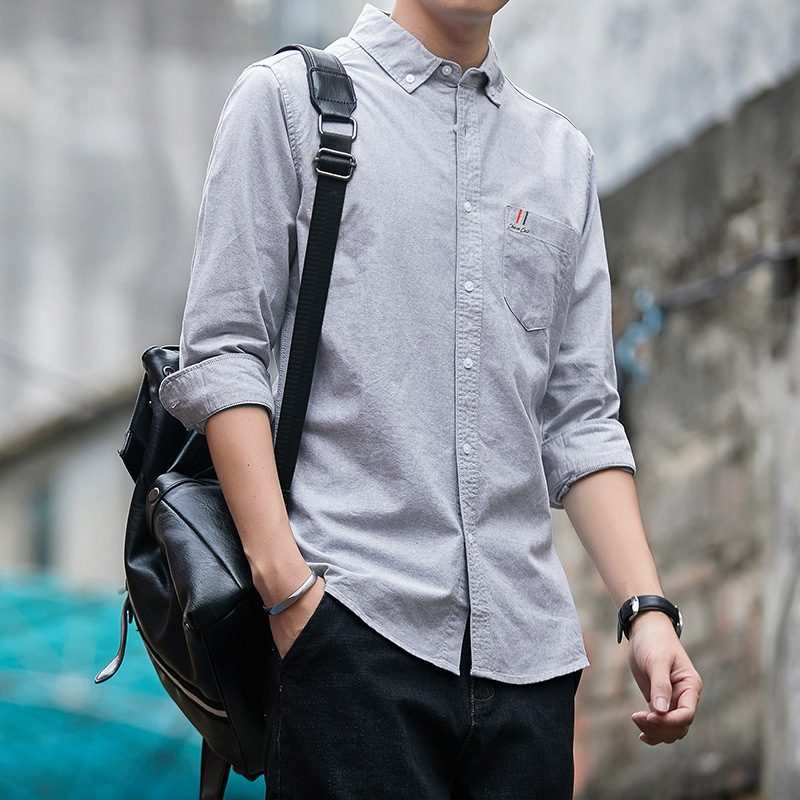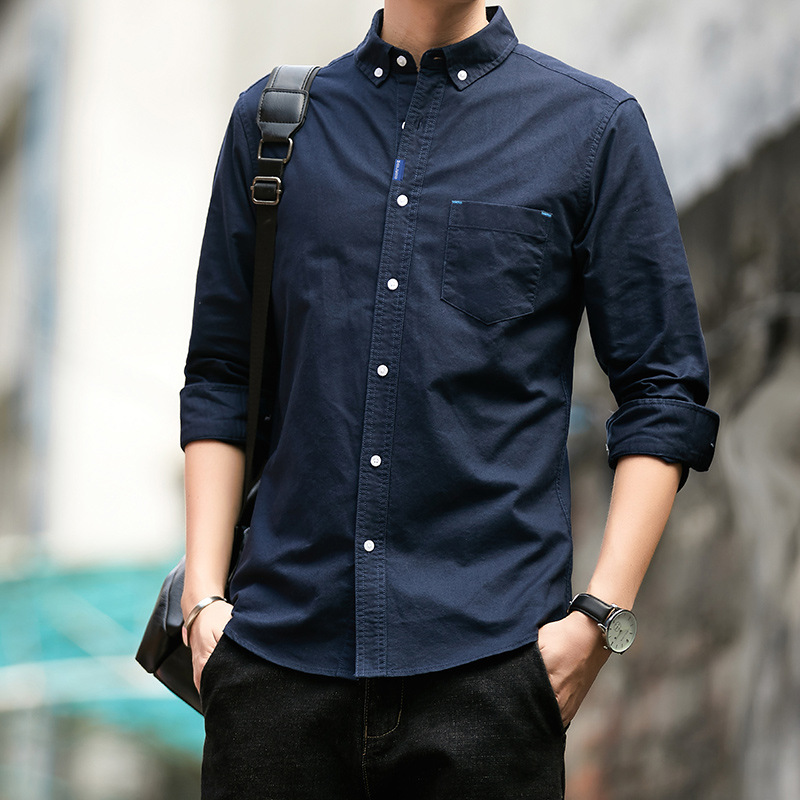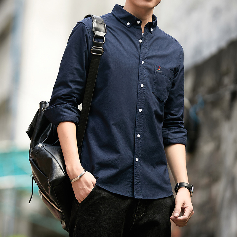 면 남성 셔츠 긴팔 2026 신상 봄 가을 옥스퍼드 원단 솔리드 컬러 슬림핏 비즈니스 캐주얼 면 셔츠 남성용스토어 가기