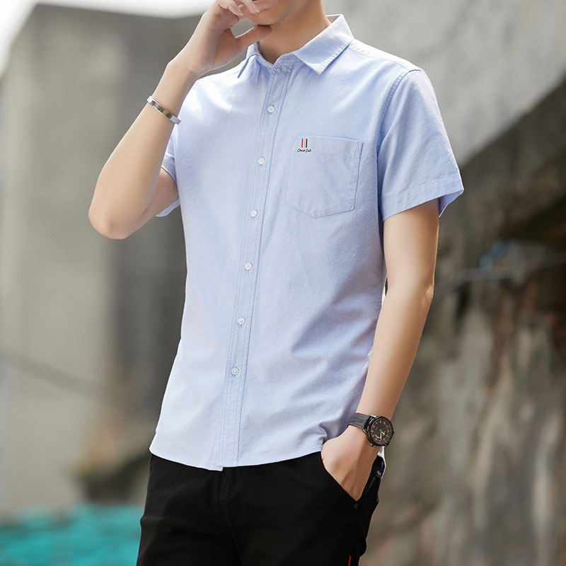 男士短袖衬衫夏季新款韩版休闲衬衣男青年衣服牛津纺男寸厂家直供