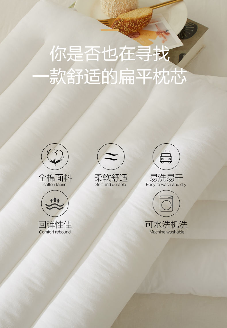 순면 베개 면 낮은 베개 초박형 성인 가정용 베개 코어 낮은 베개 플랫 경추 보호 어린이 베개 코어스토어 가기