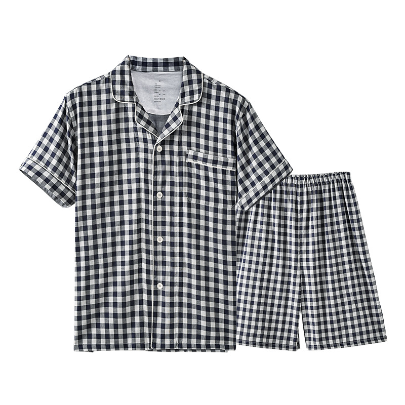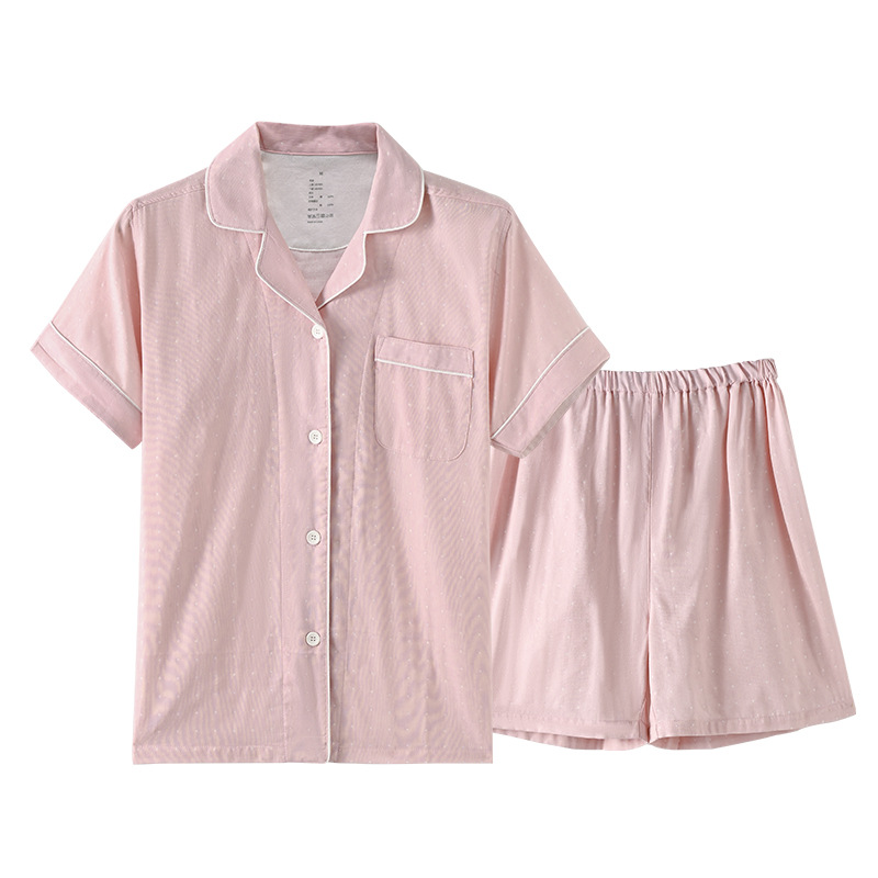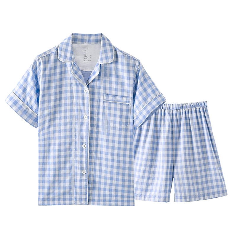 커플의 면 더블 레이어 거즈 잠옷 여자의 새로운 일본식 반팔 반바지 잠옷 아니 사이드 솔기 가정 옷 세트