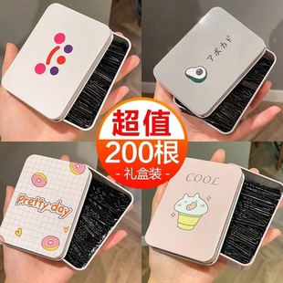 200根韩版精美铁盒装一字夹套装 简约碎发发夹边夹黑色盘发发卡女