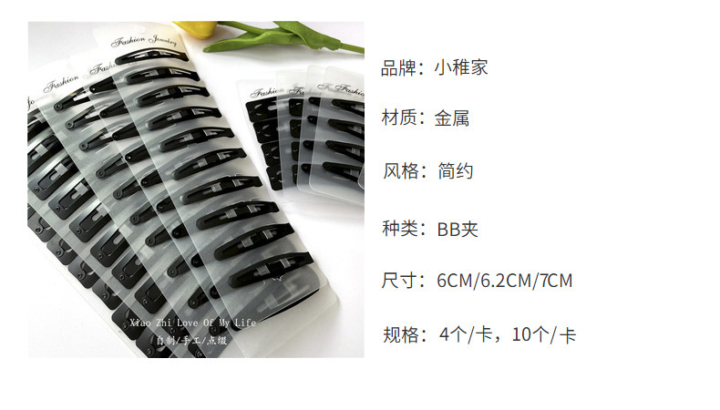 1卡10支装精美吊卡黑色赠品一字夹 韩国简约边夹发夹网店礼品批发