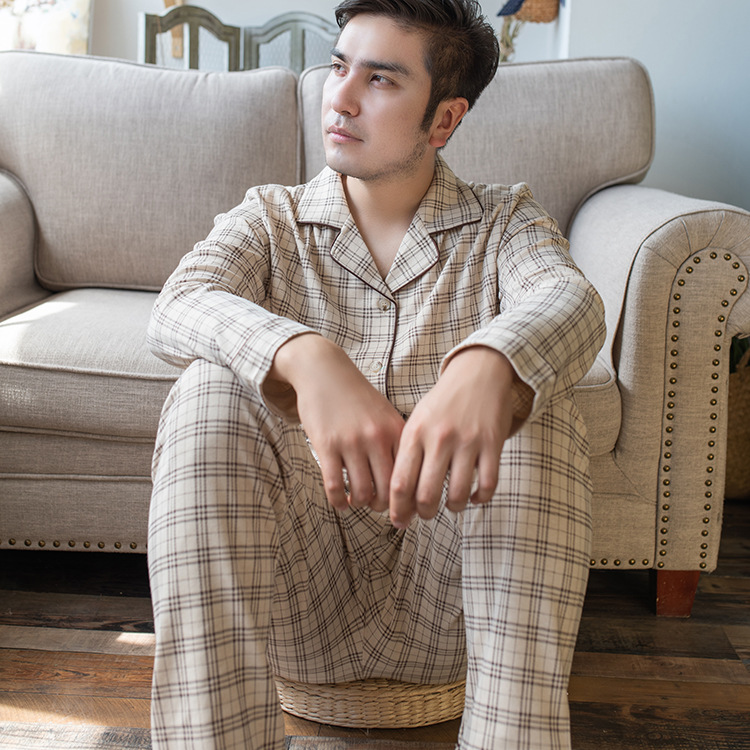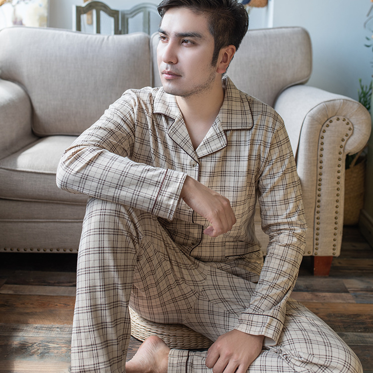 가을 신장 컬러풀 코튼 남성 긴팔 긴바지 홈웨어 순면 잠옷 세트 심플 캐주얼 통기성 편안함스토어 가기