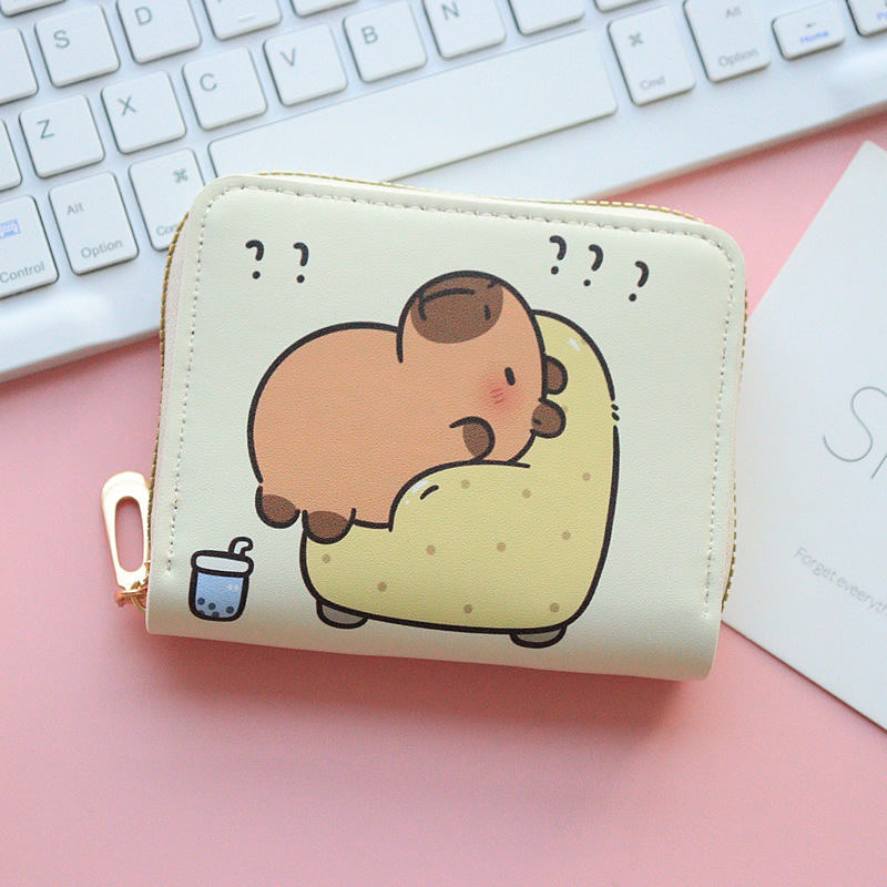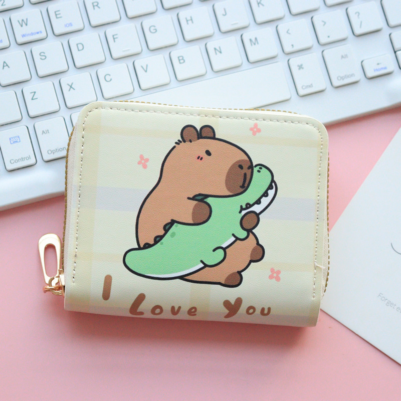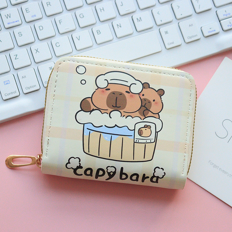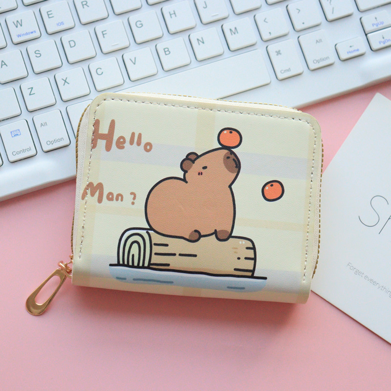 국경 간 패션 Capibala Capybara 학생 카드 홀더 짧은 지퍼 대용량 지갑 소형 동전 지갑