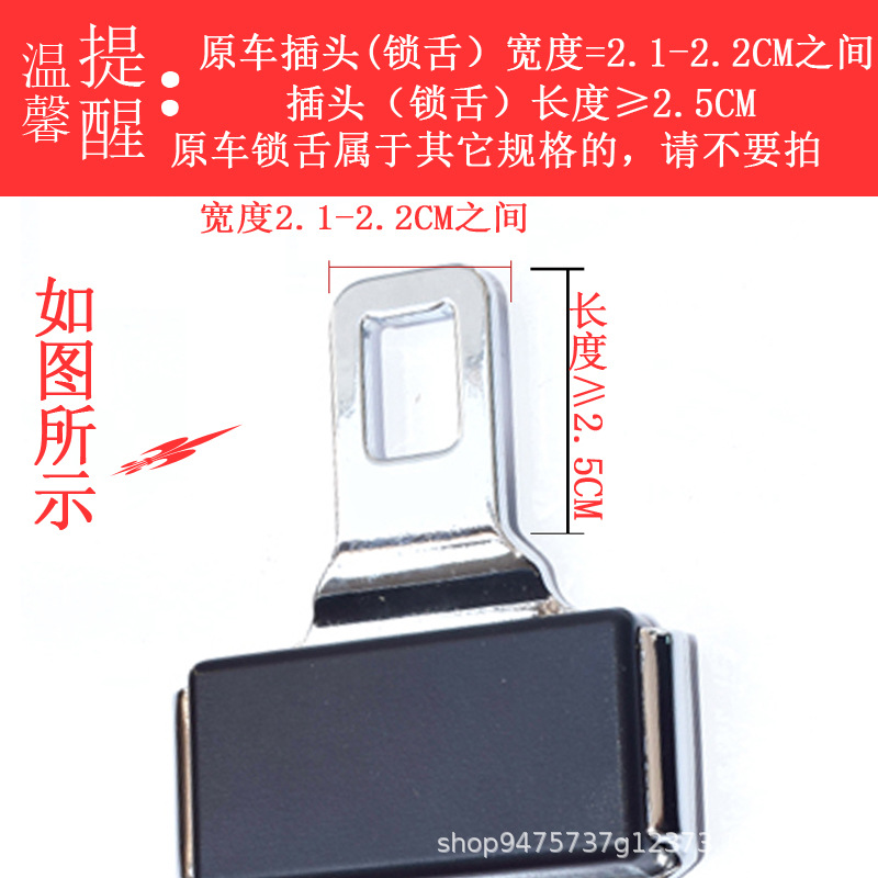 市面上,普通车型用的安全带舌片宽度一般是2.1CM,长度3.2CM左右,大部分豪华车上的锁舌宽度是2.1,长度只有2.5CM,很多客人不去测量原车锁舌长度,导致无法使用,针对这种情况,我公司工程师设计研发了这款多功能的安全带锁扣。更好的满足了绝大部分客人的需求。