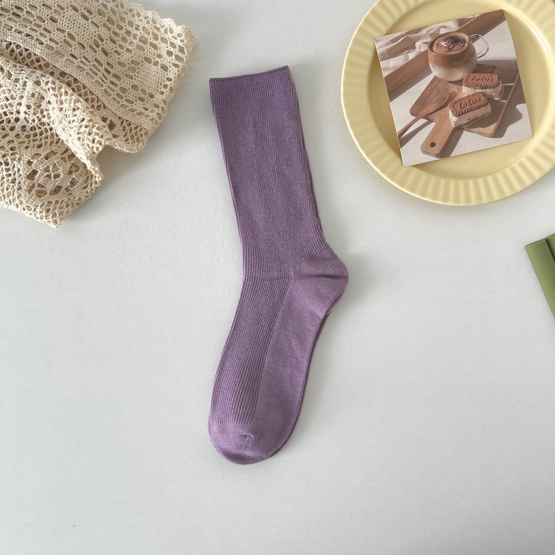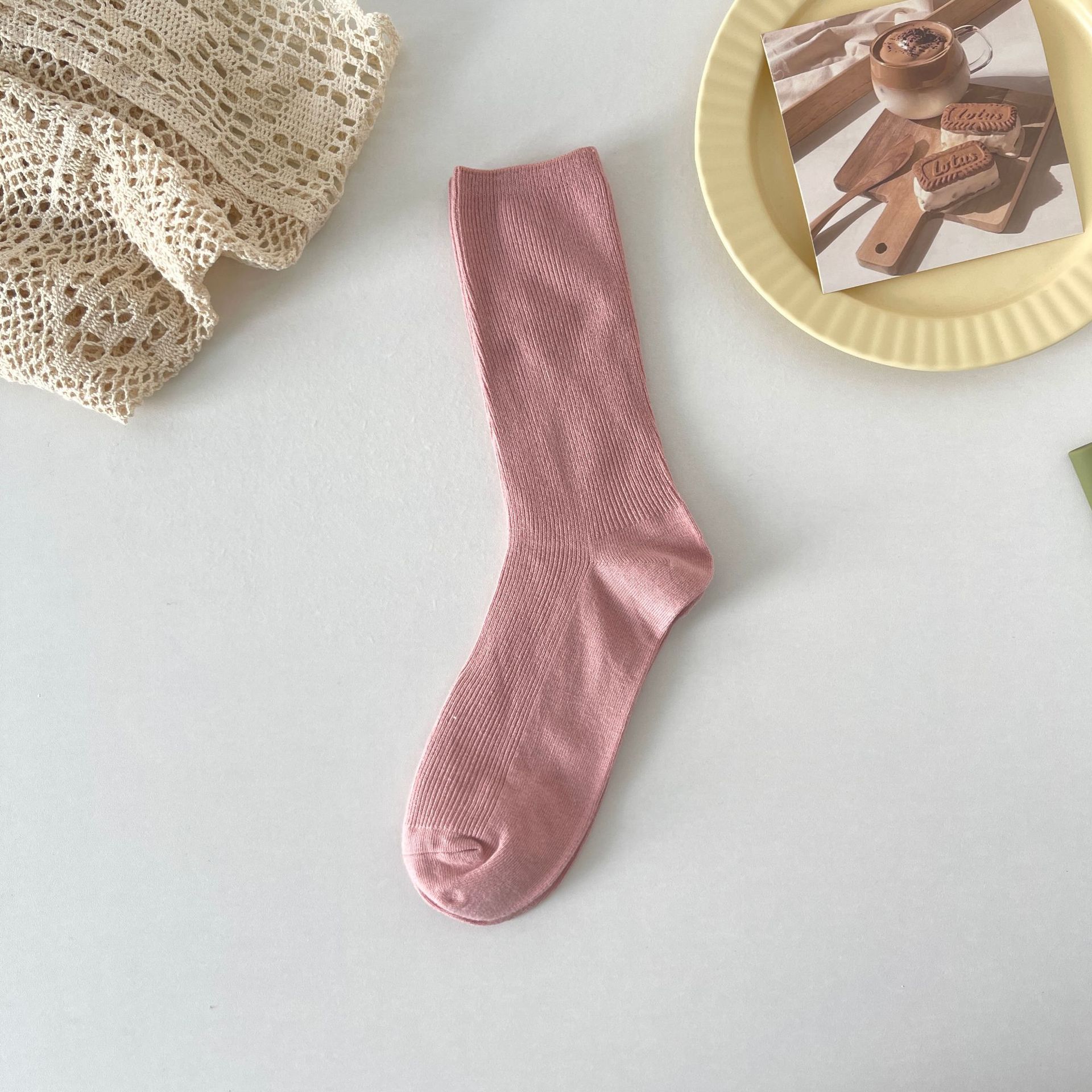 양말 여성용 빗질 코튼 캔디 컬러 스택 양말 유행 대학 스타일 일본식 단색 jk 슬릿 롱 양말