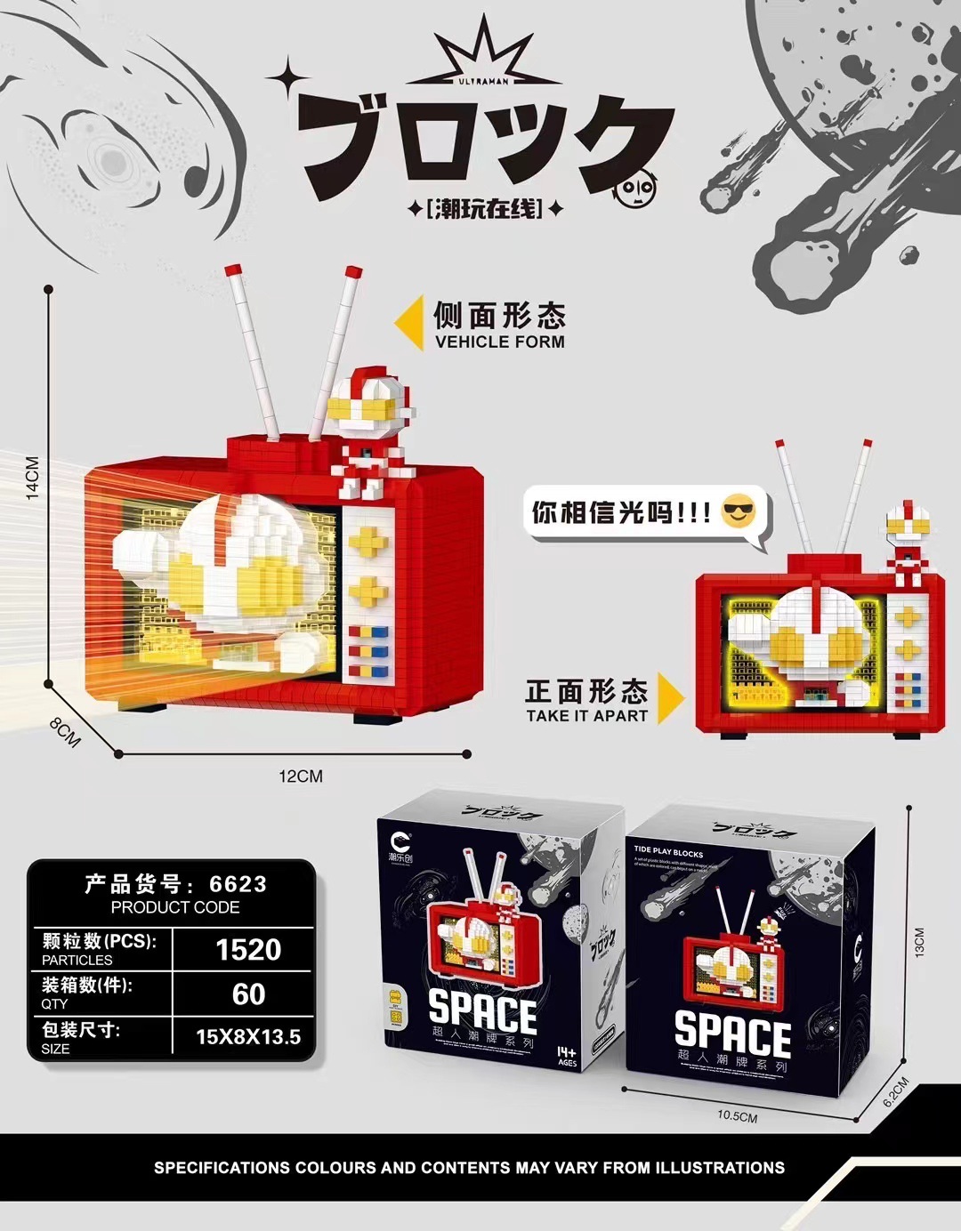 彩盒规格(box size):10.5*6.2*13cm