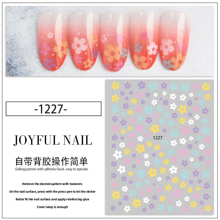 인터넷 연예인 뜨거운 여름 다섯 꽃잎 꽃 작은 신선한 네일 스티커 접착제 일본 만화 귀여운 네일 스티커
