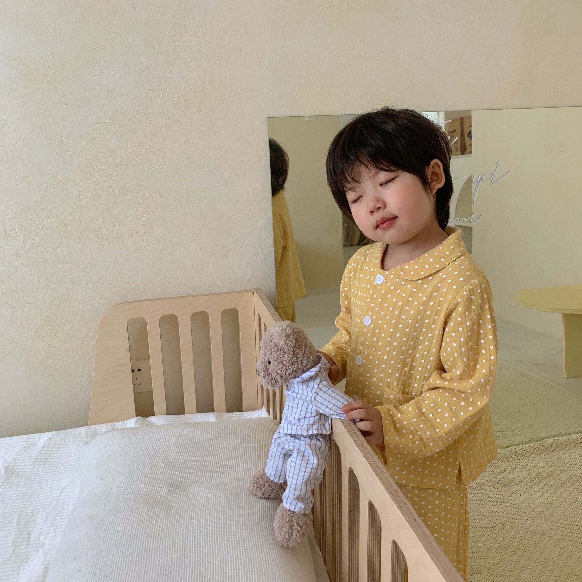 어린이 잠옷 아기의 봄과 가을 순면 거즈 물방울 무늬 남아 긴팔 투피스 세트 여아 가정복스토어 가기