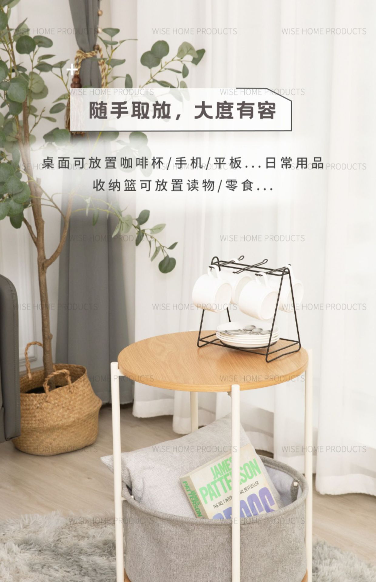 북유럽 사이드 테이블 작은 커피 테이블 소파 사이드 테이블 현대 간단한 철 거실 더블 레이어 라운드 나무 침대 옆 랙스토어 가기
