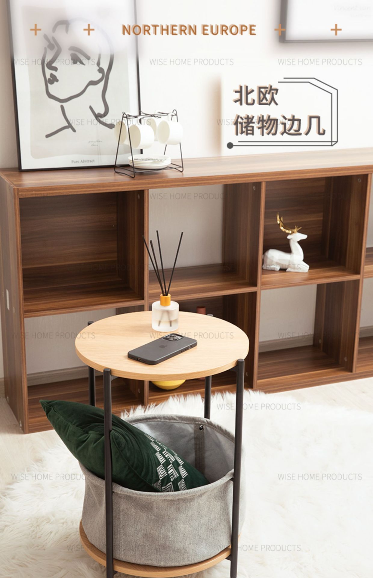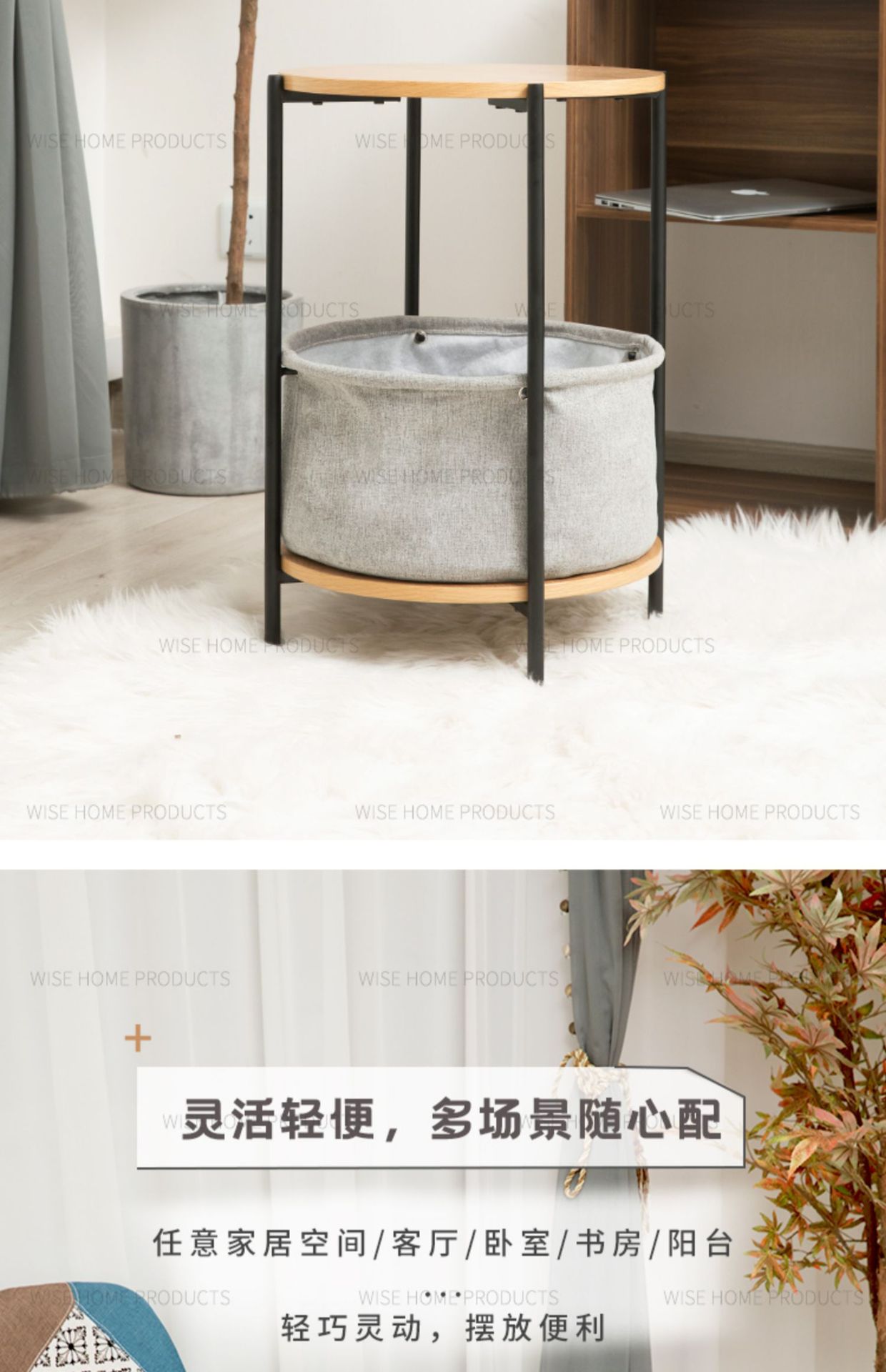 未艾北欧边桌小茶几沙发边现代简约铁艺客厅可移动双层木艺边角几