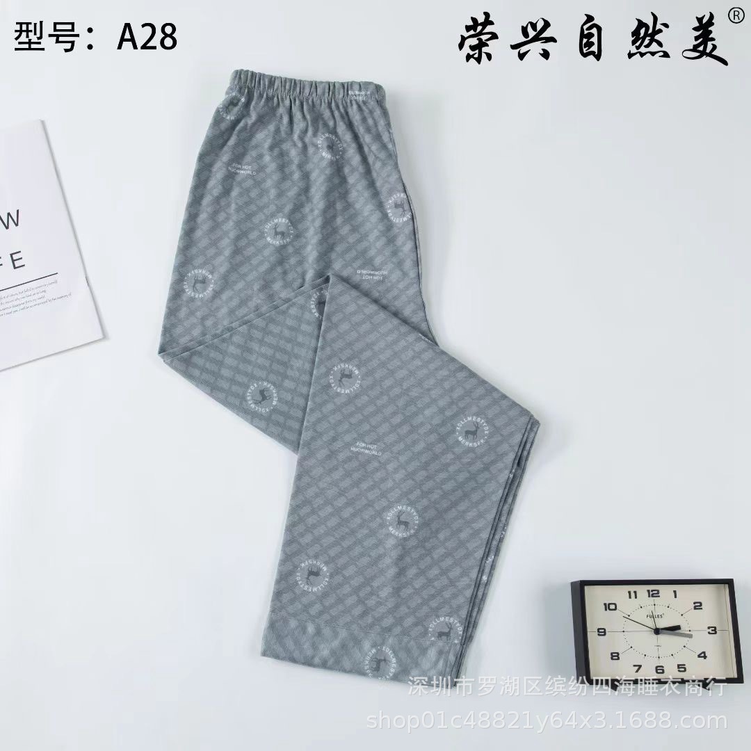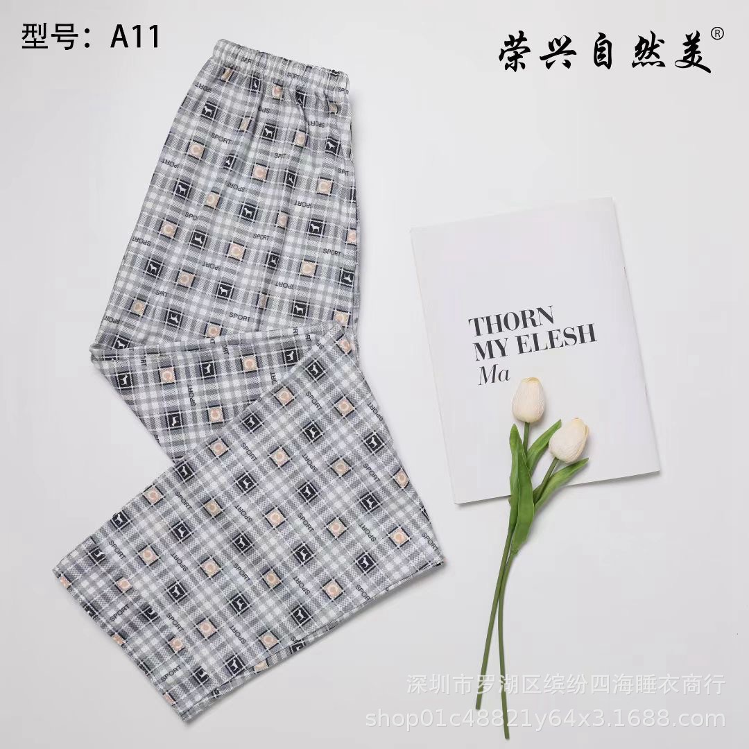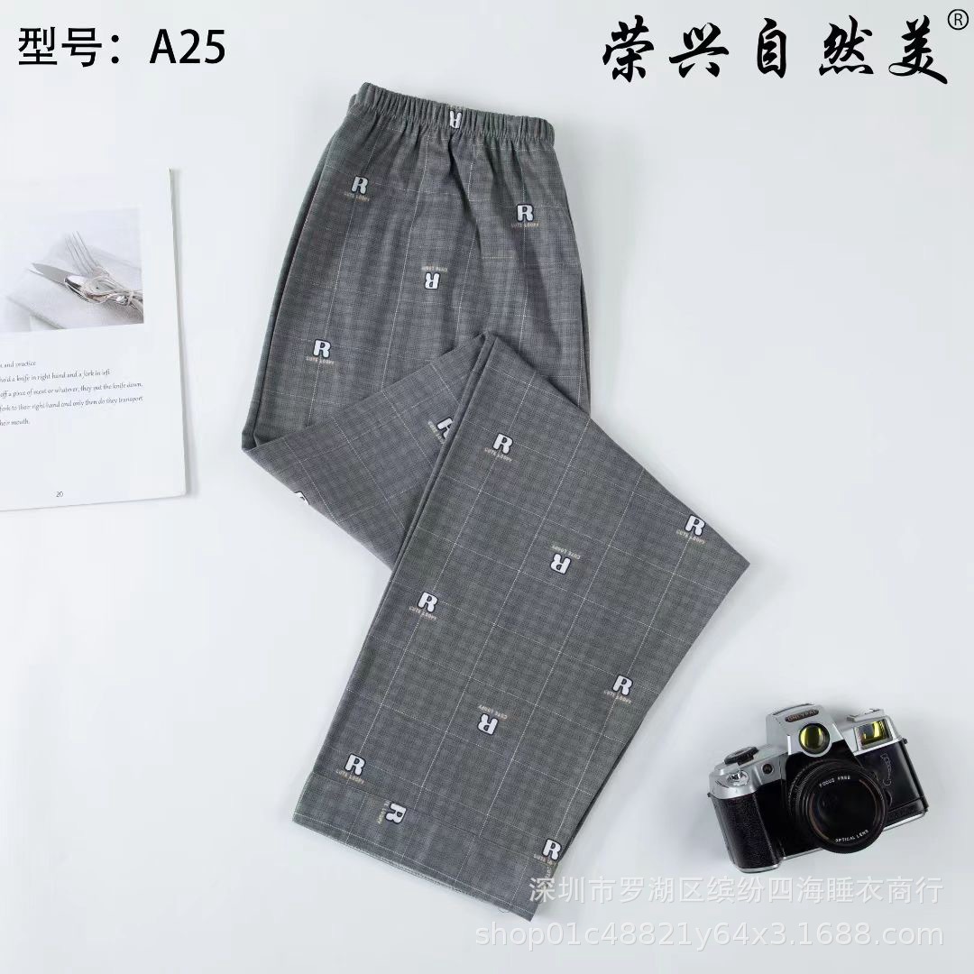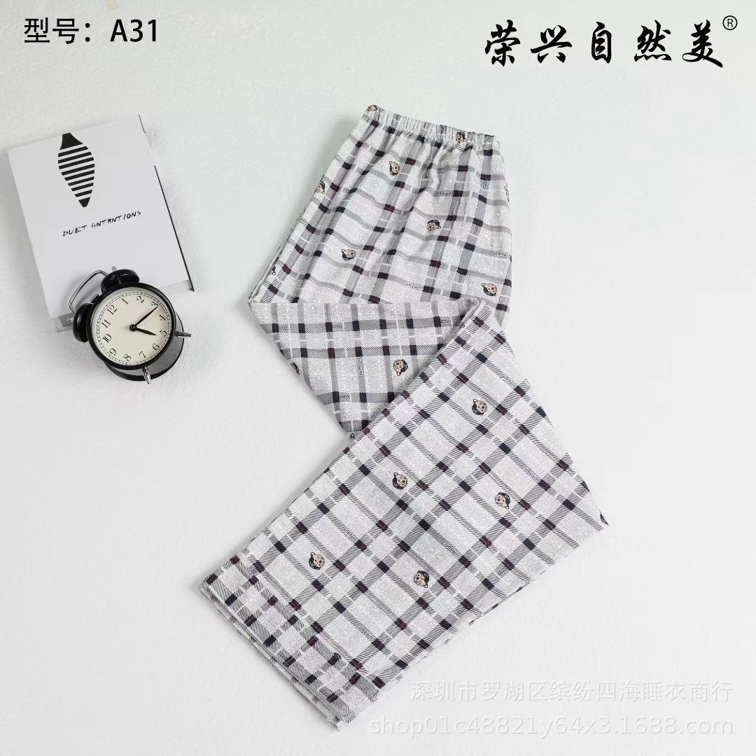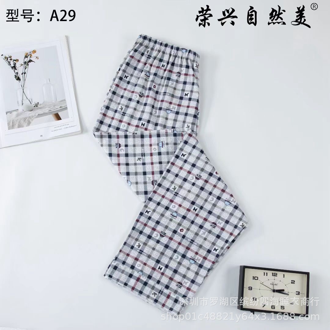 Rongxing 가을/겨울 남성 잠옷 바지 100% 면 남성용 녹색 미디엄 및 올드 팬츠 격자 무늬 코튼 프론트스토어 가기