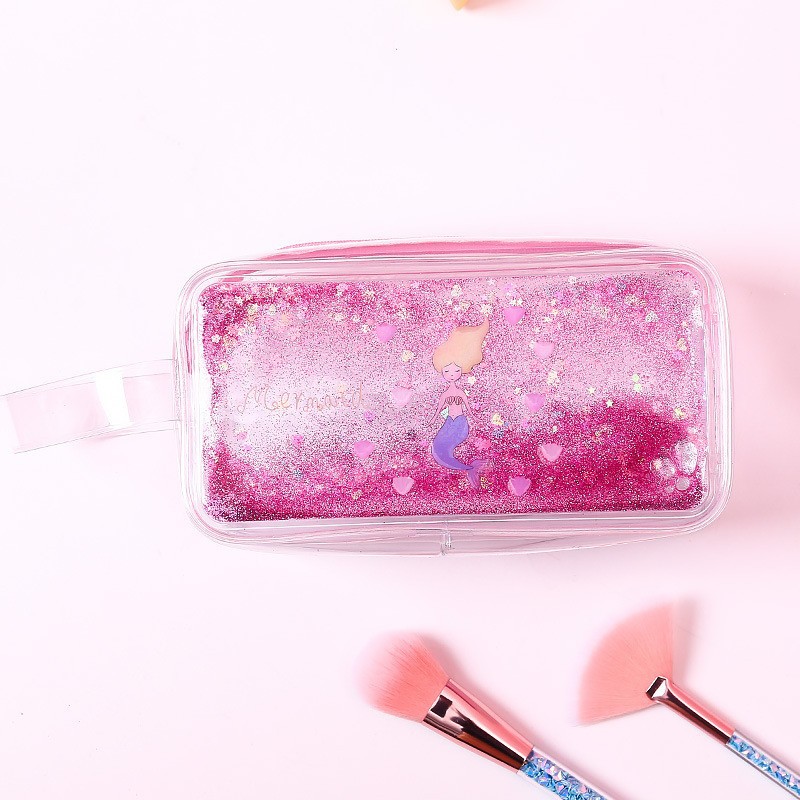 바람이 흐르는 모래 대용량 필통 데이지 화장품 가방 귀여운 소녀 보관 가방 투명 필통 학생 문구