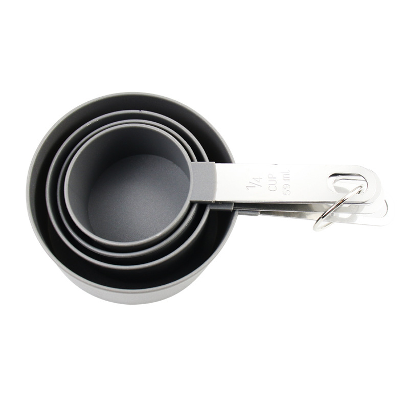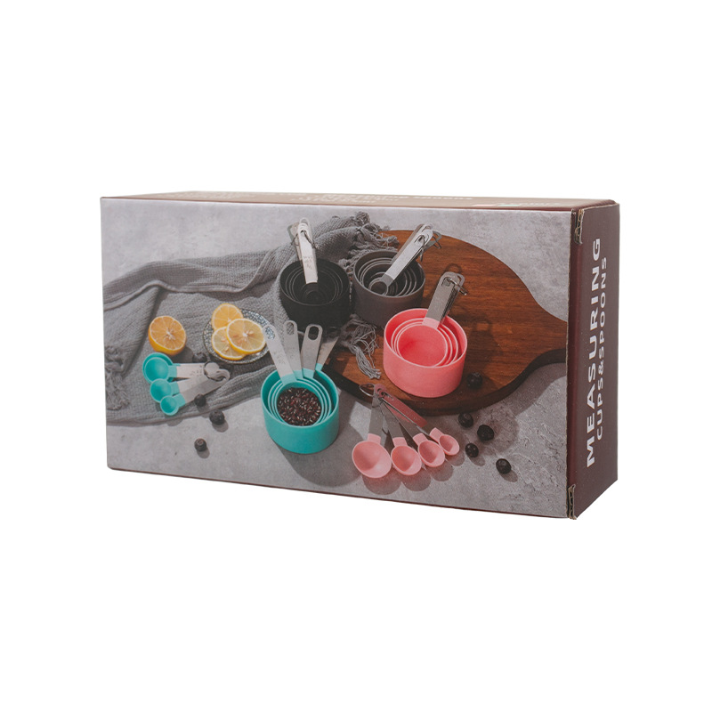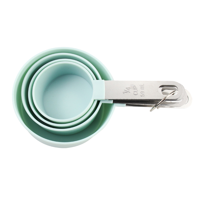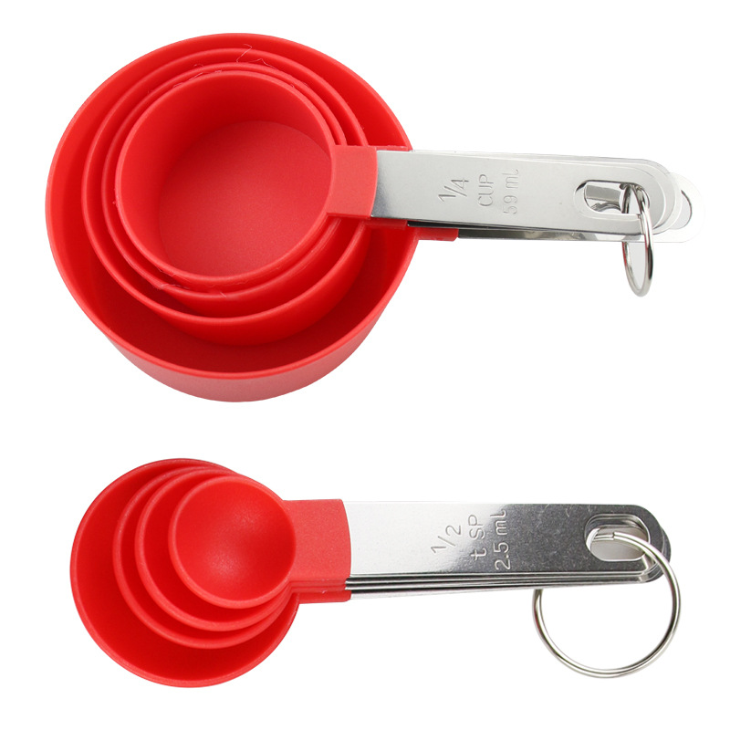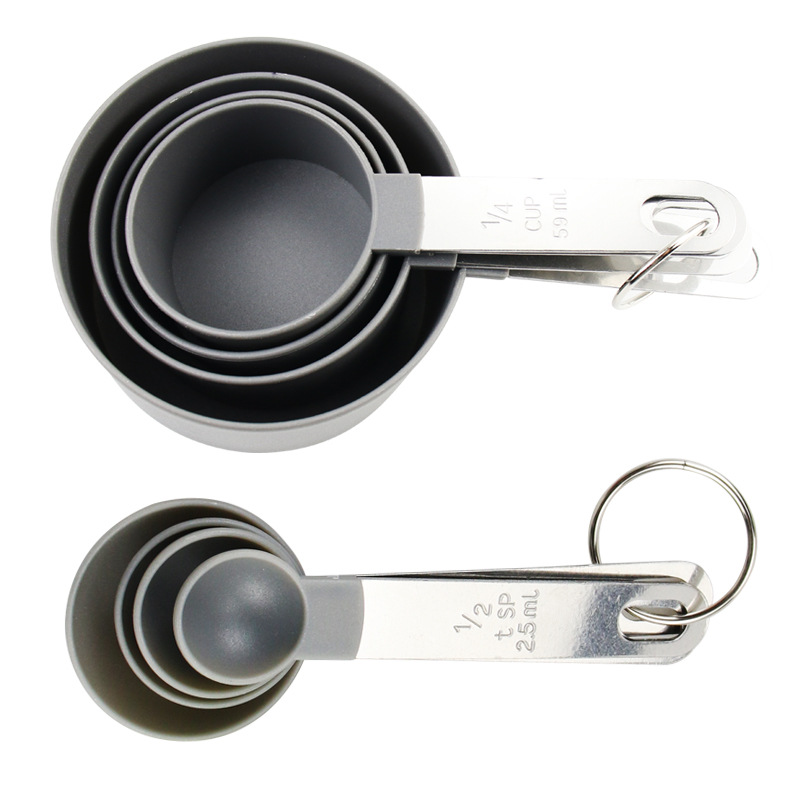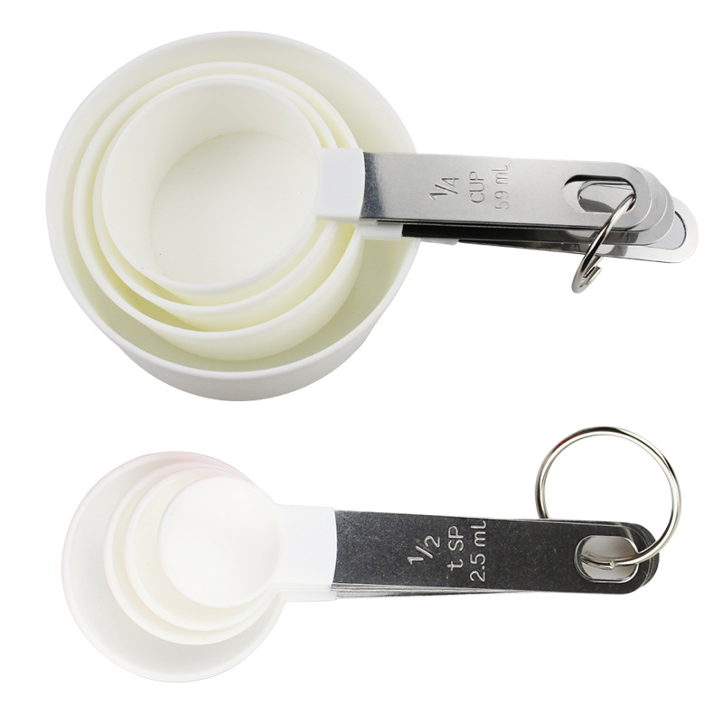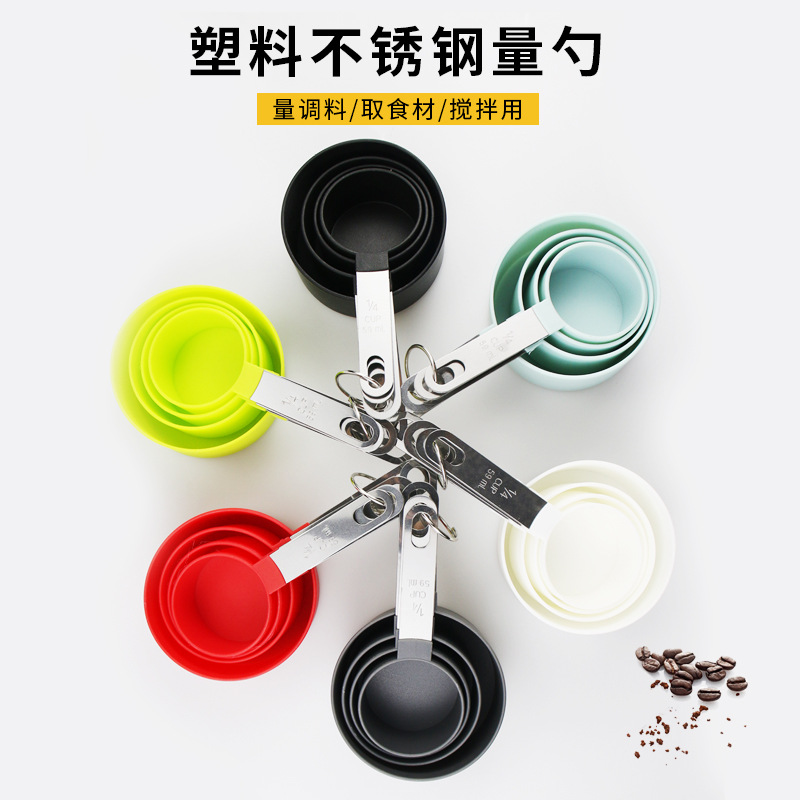 스테인레스 스틸 측정 컵 계량 스푼 세트 스테인레스 스틸 핸들 플라스틱 측정 스푼 8 개 세트 스케일 베이킹 도구와 조합