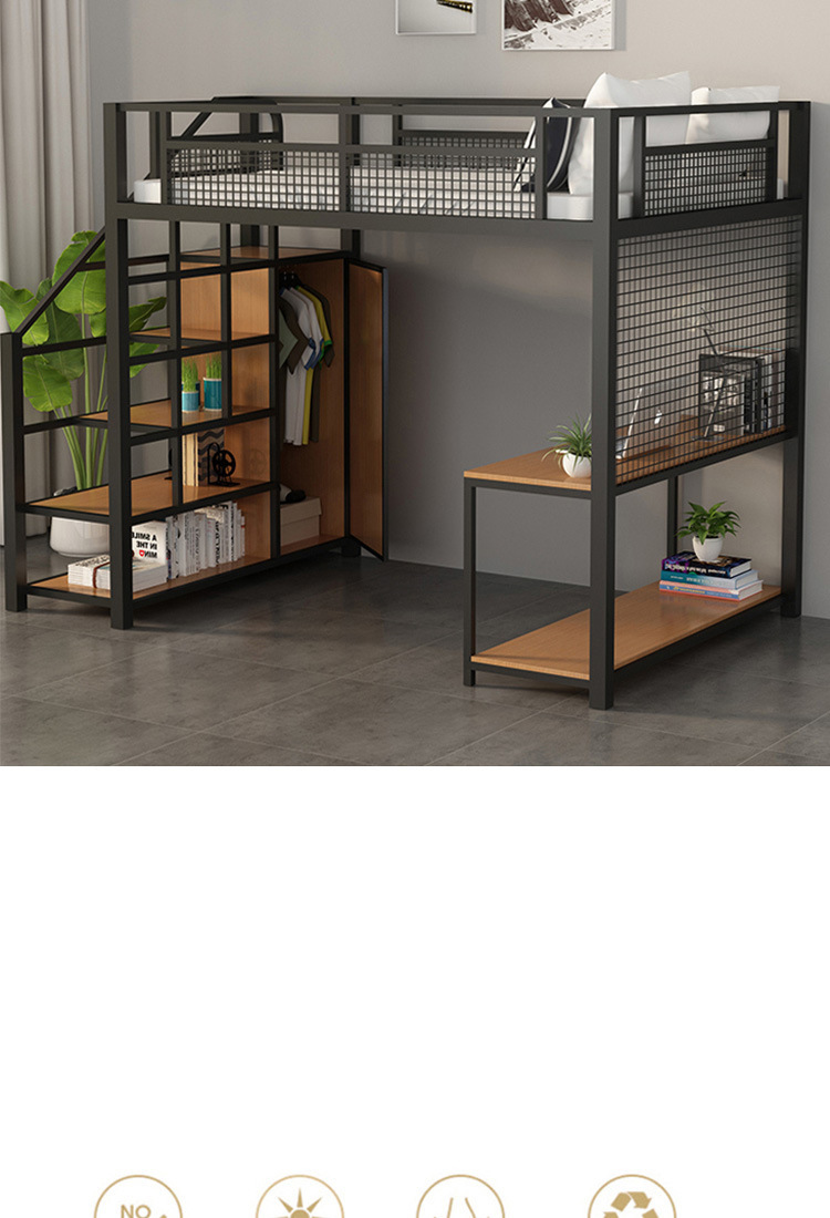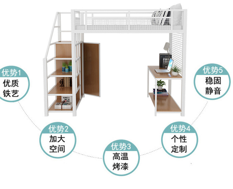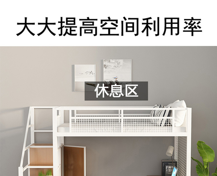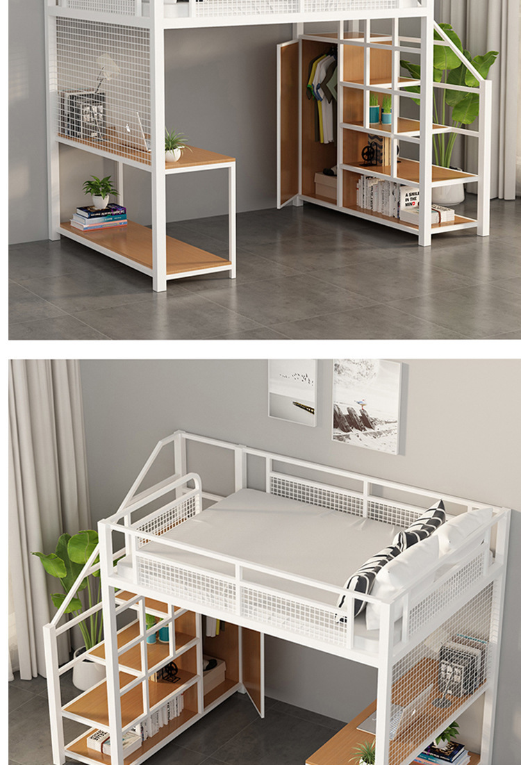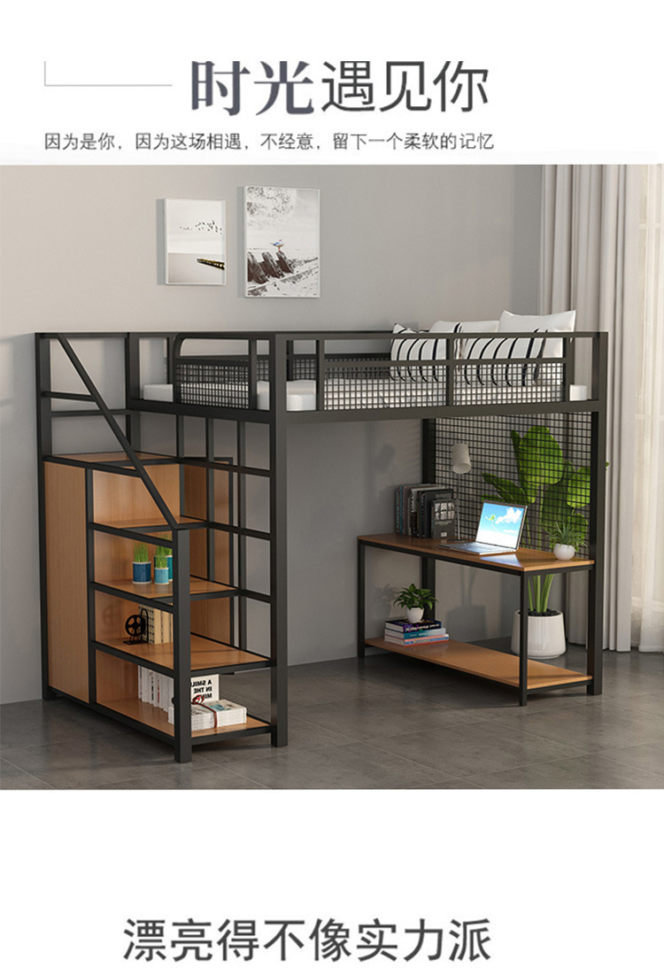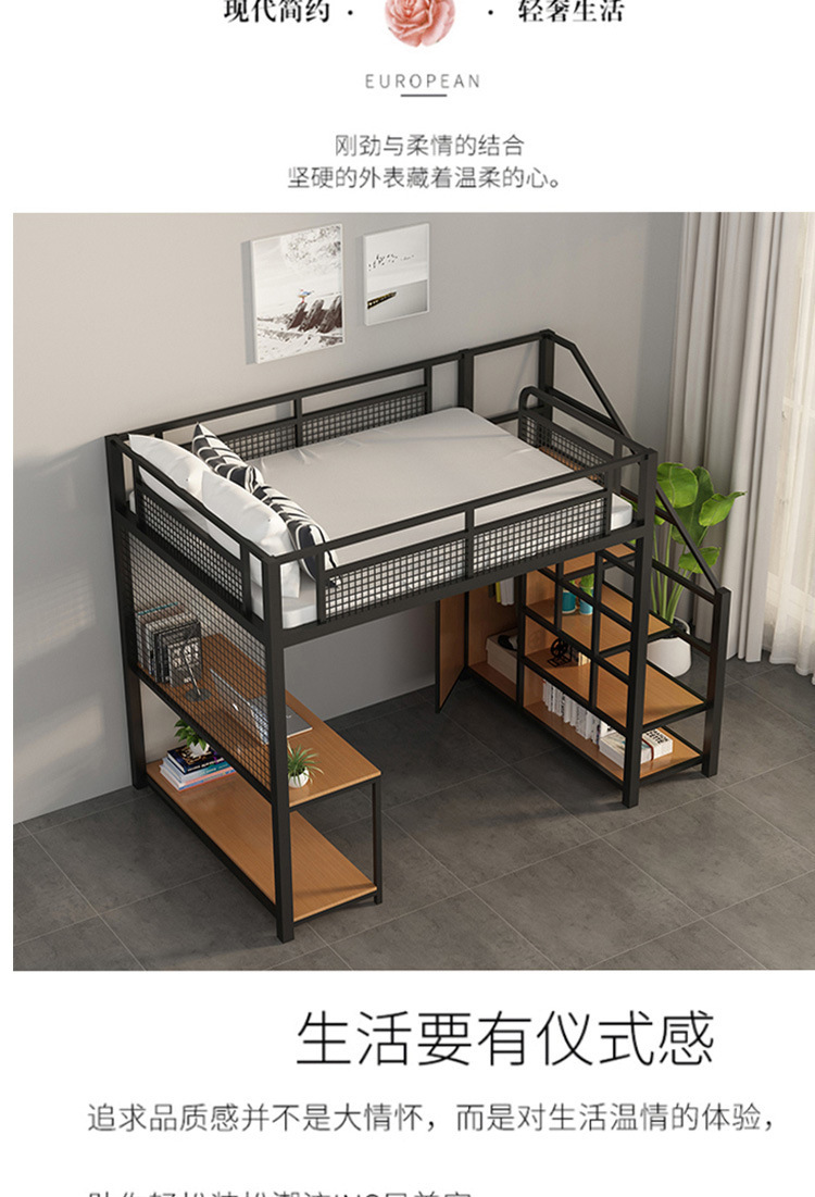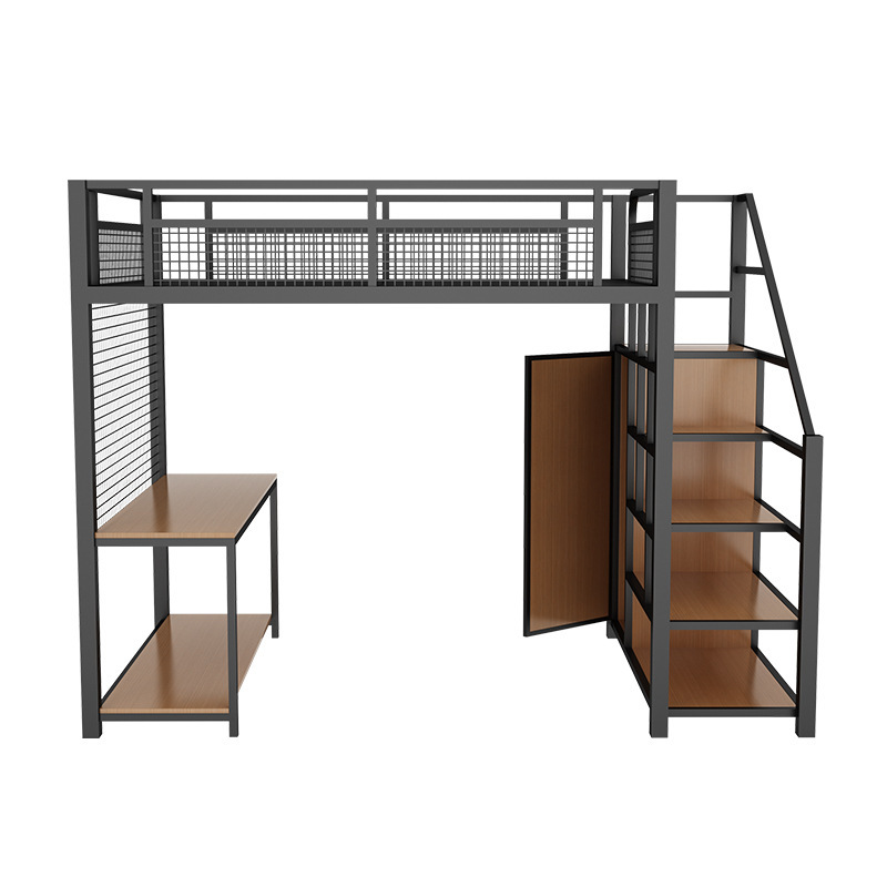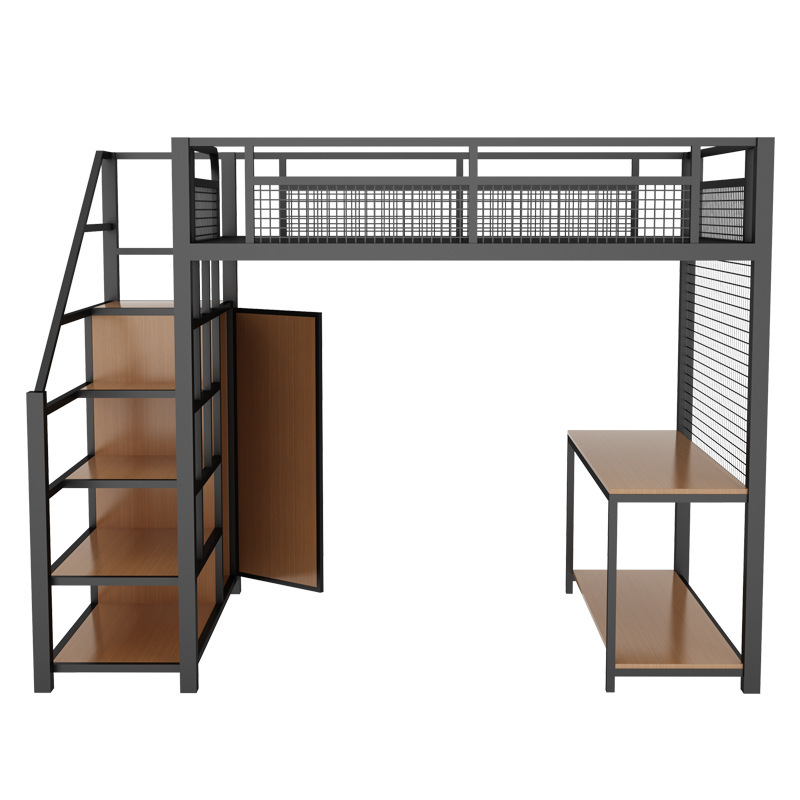 작은 아파트 침실 철제 고가 침대 침대 하부 테이블 듀플렉스 싱글 아파트 다기능 철제 침대 학생 기숙사스토어 가기