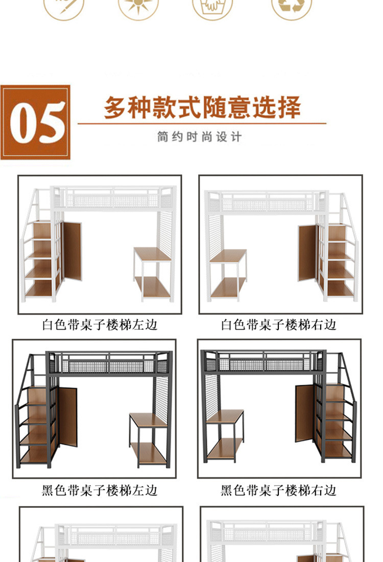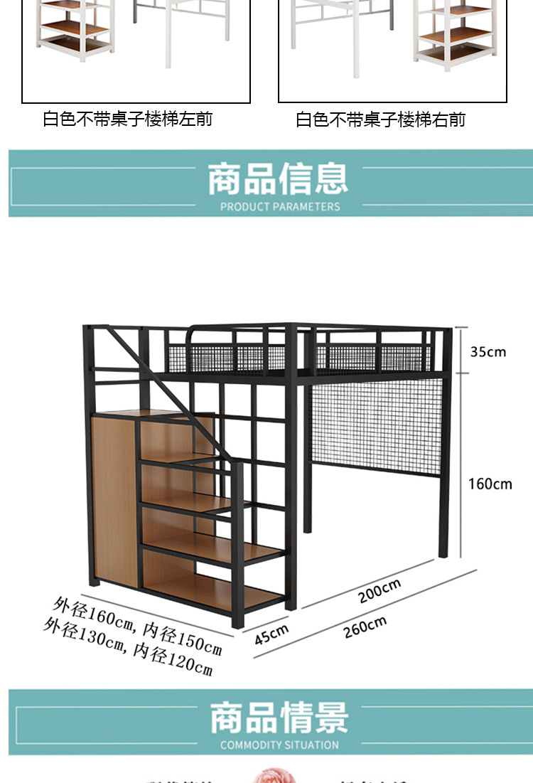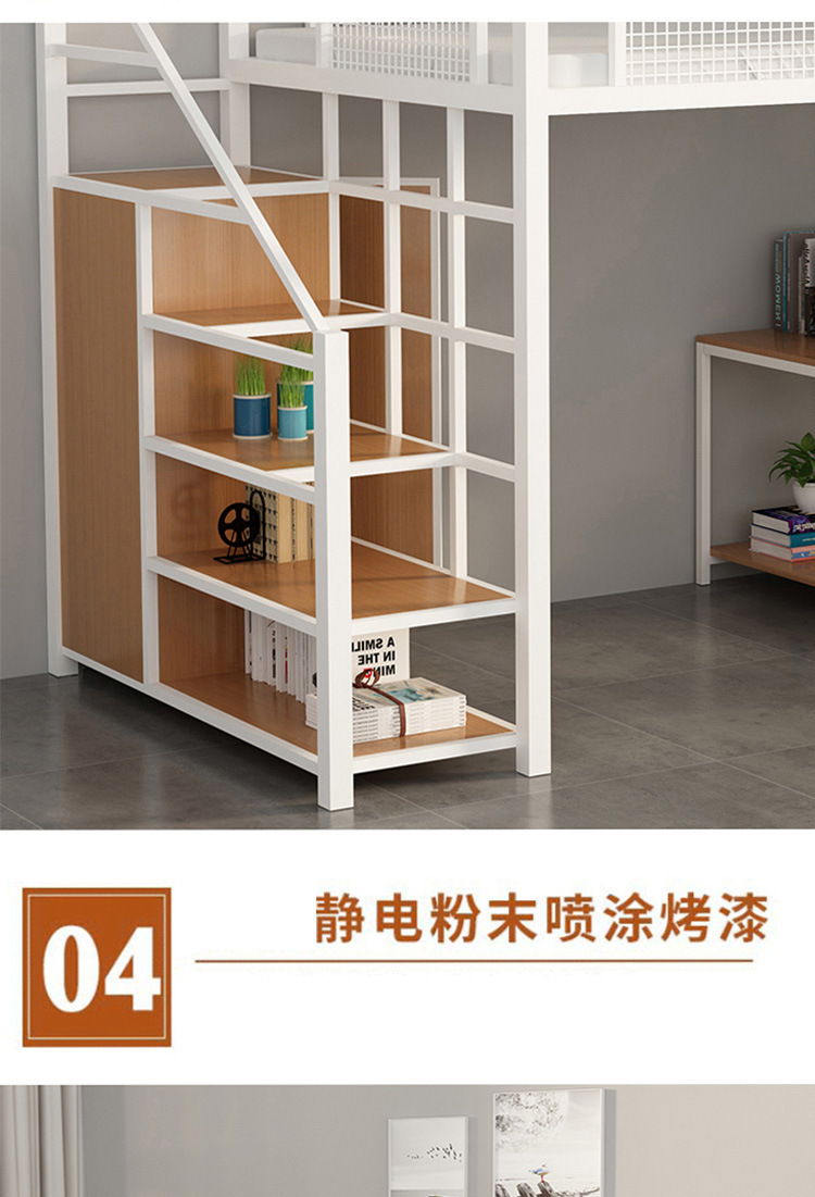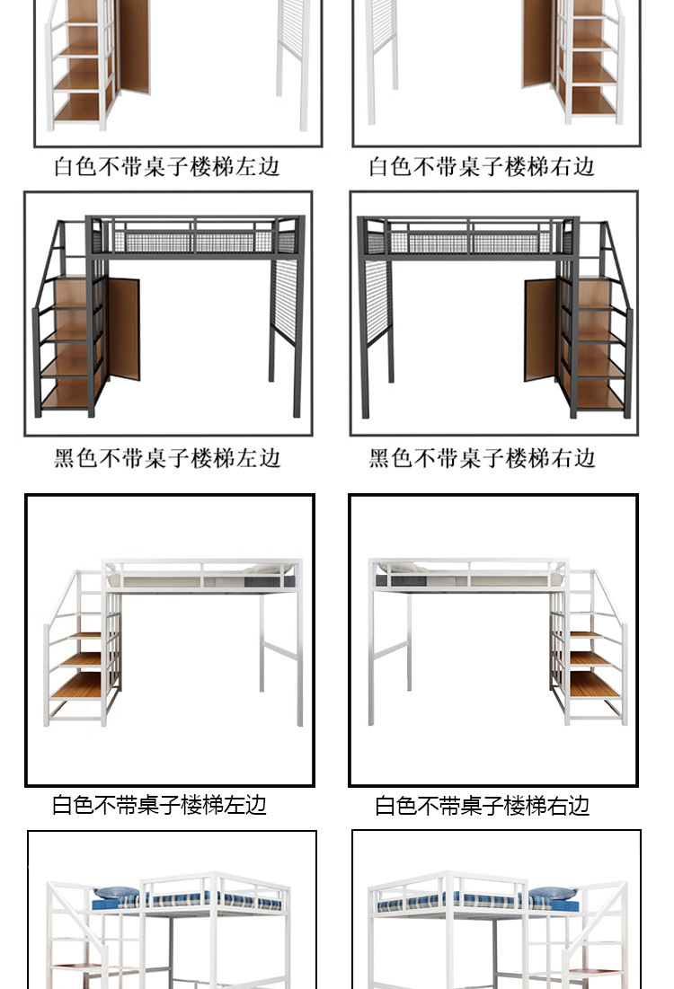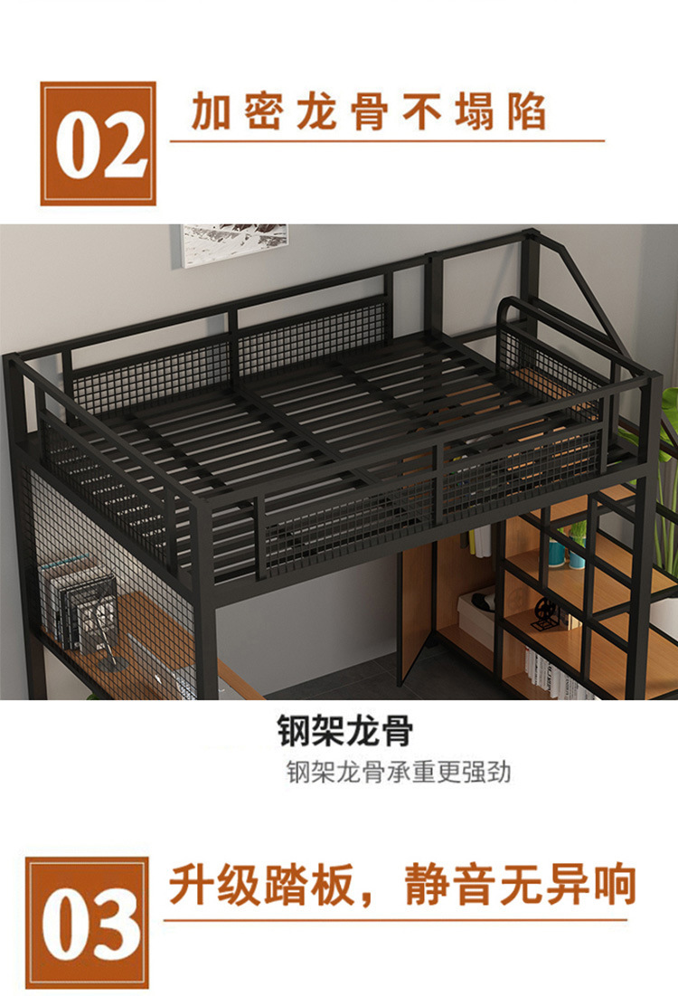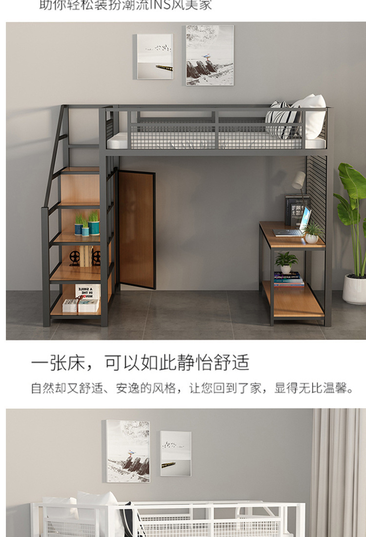 작은 아파트 침실 철제 고가 침대 침대 하부 테이블 듀플렉스 싱글 아파트 다기능 철제 침대 학생 기숙사스토어 가기