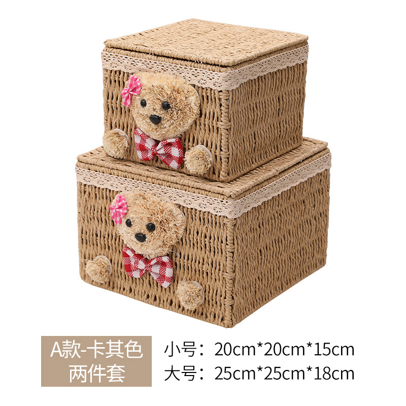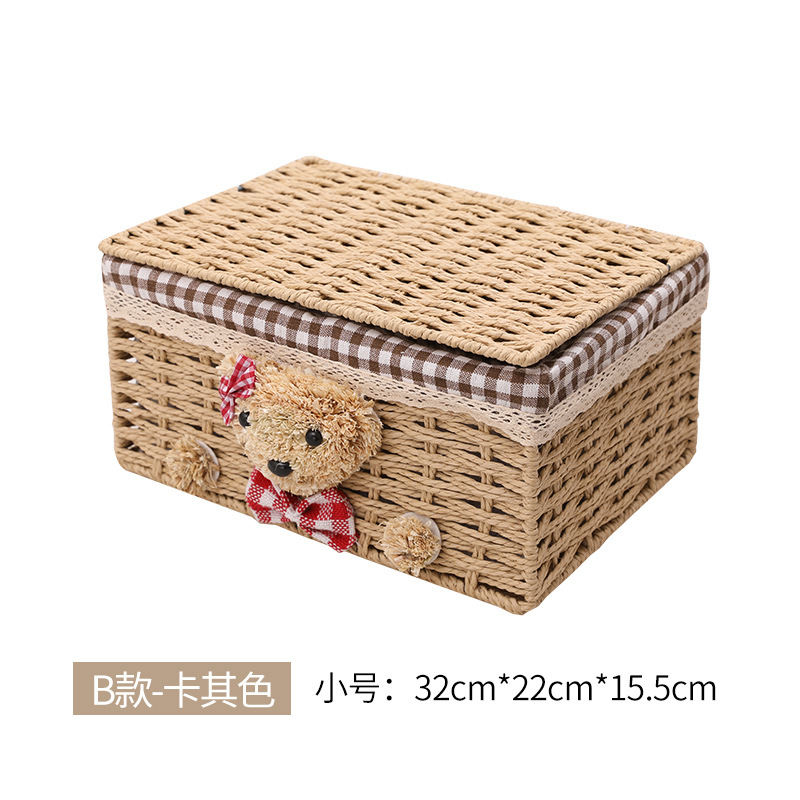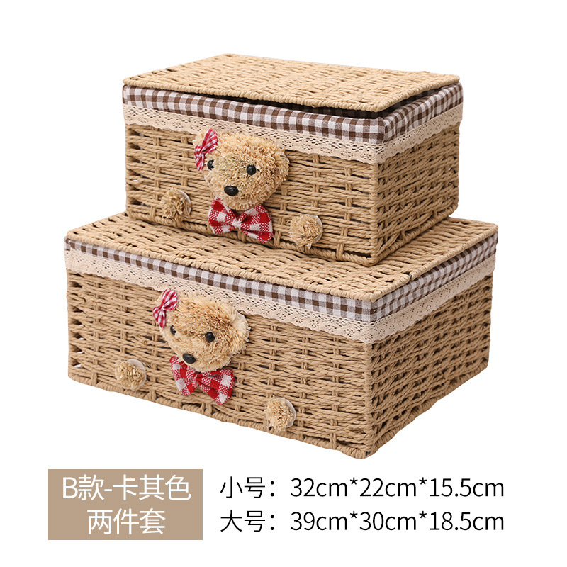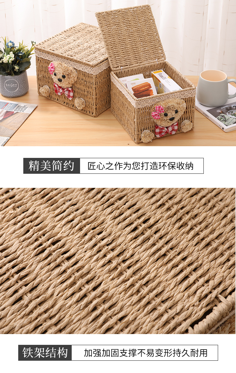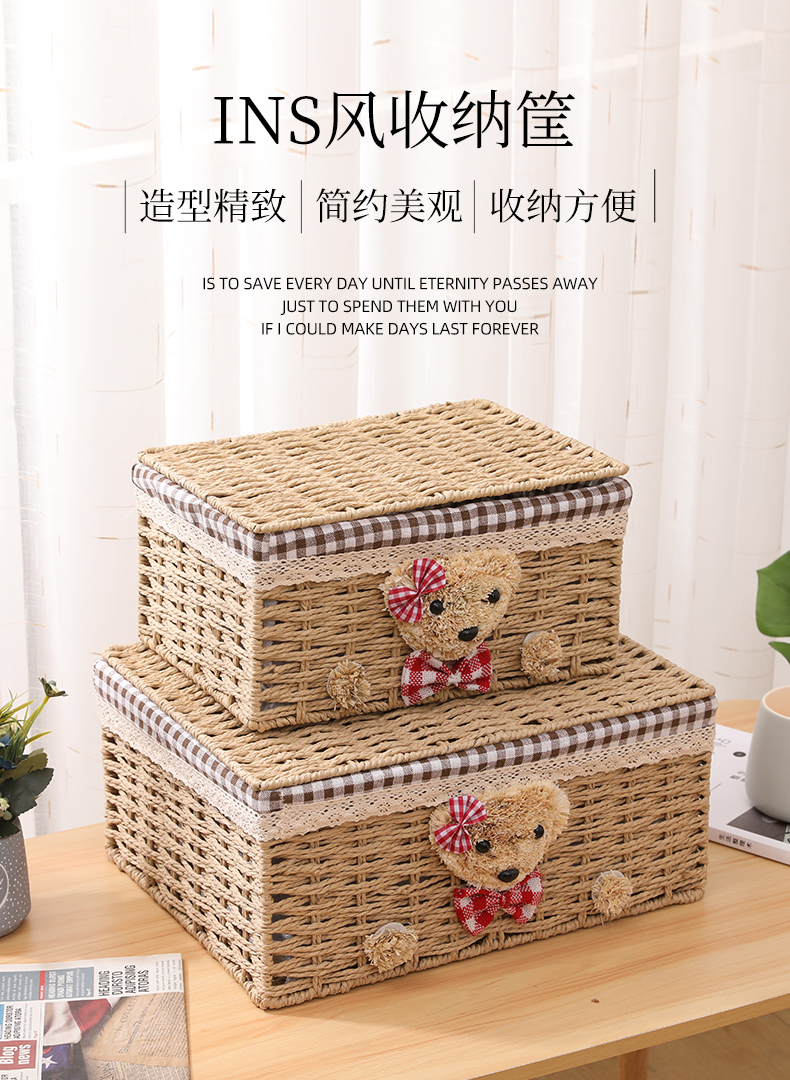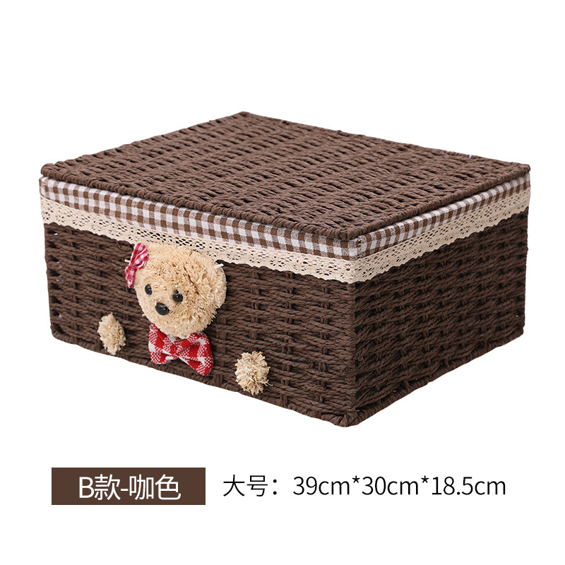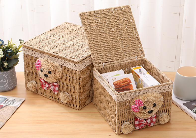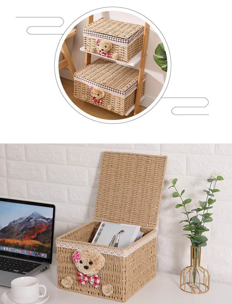 뚜껑 빨대 데스크탑 보관함 도매 유통 보관 바구니 대형 수납 상자 종이 등나무 보관 바구니
