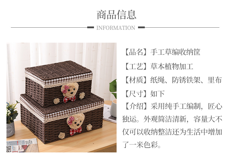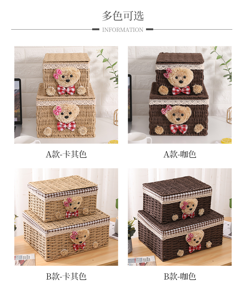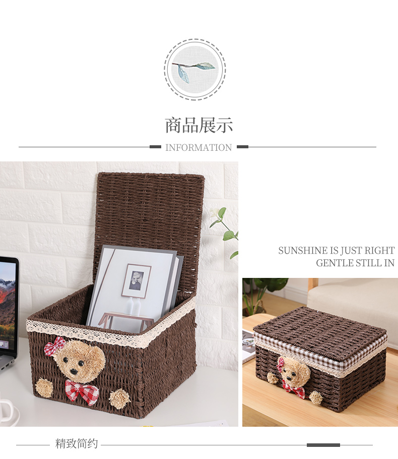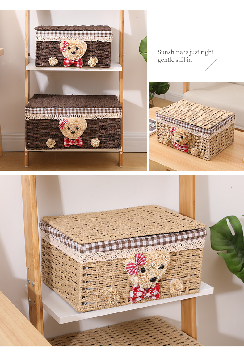 뚜껑 빨대 데스크탑 보관함 도매 유통 보관 바구니 대형 수납 상자 종이 등나무 보관 바구니스토어 가기
