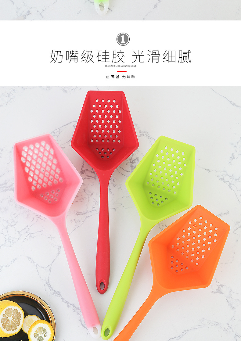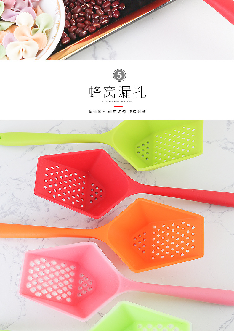 产品名称:厨房用品厨房滤油勺油格硅胶捞篱硅胶漏勺硅胶厨房工具冰铲滤水篮