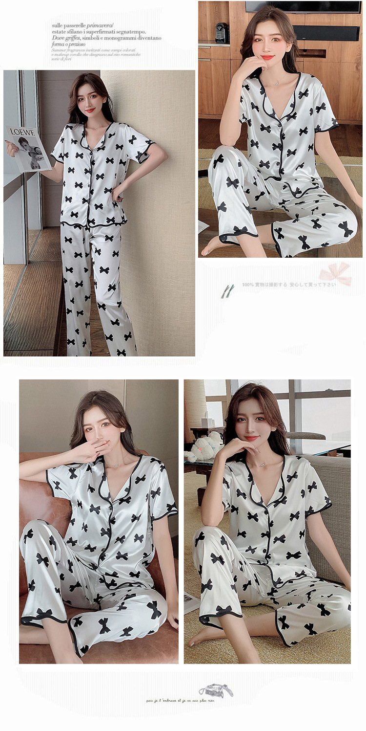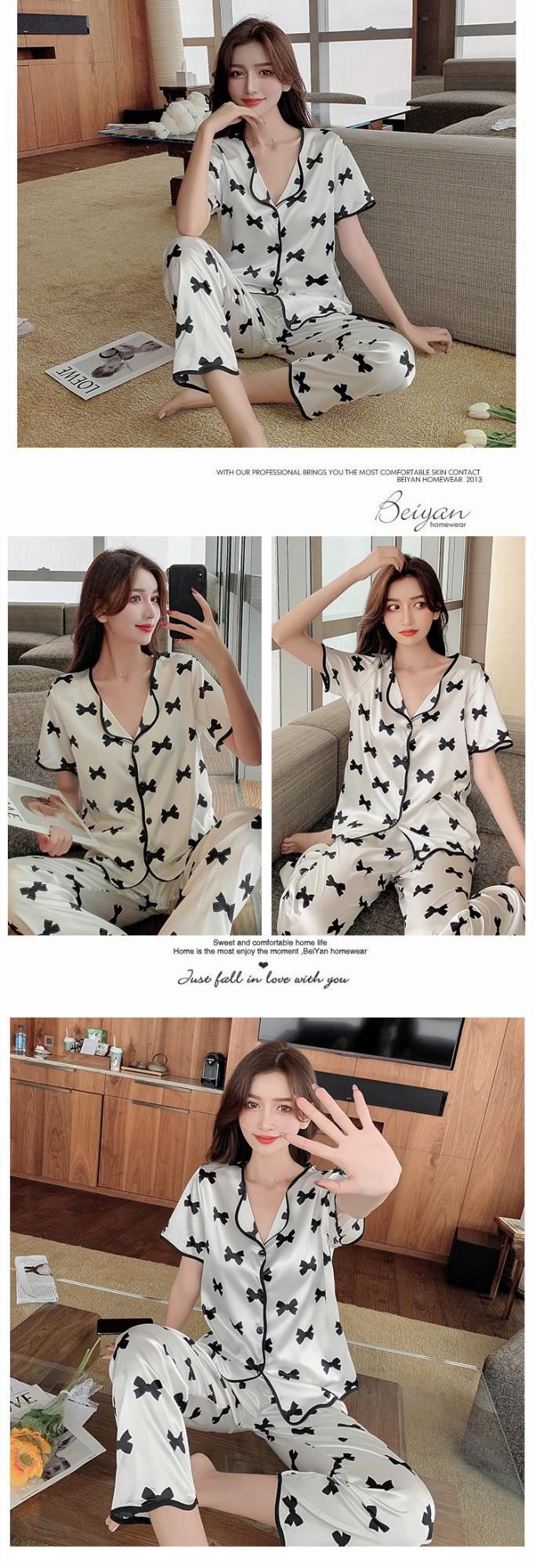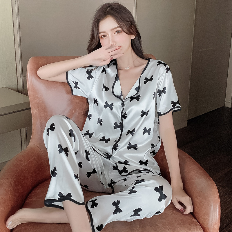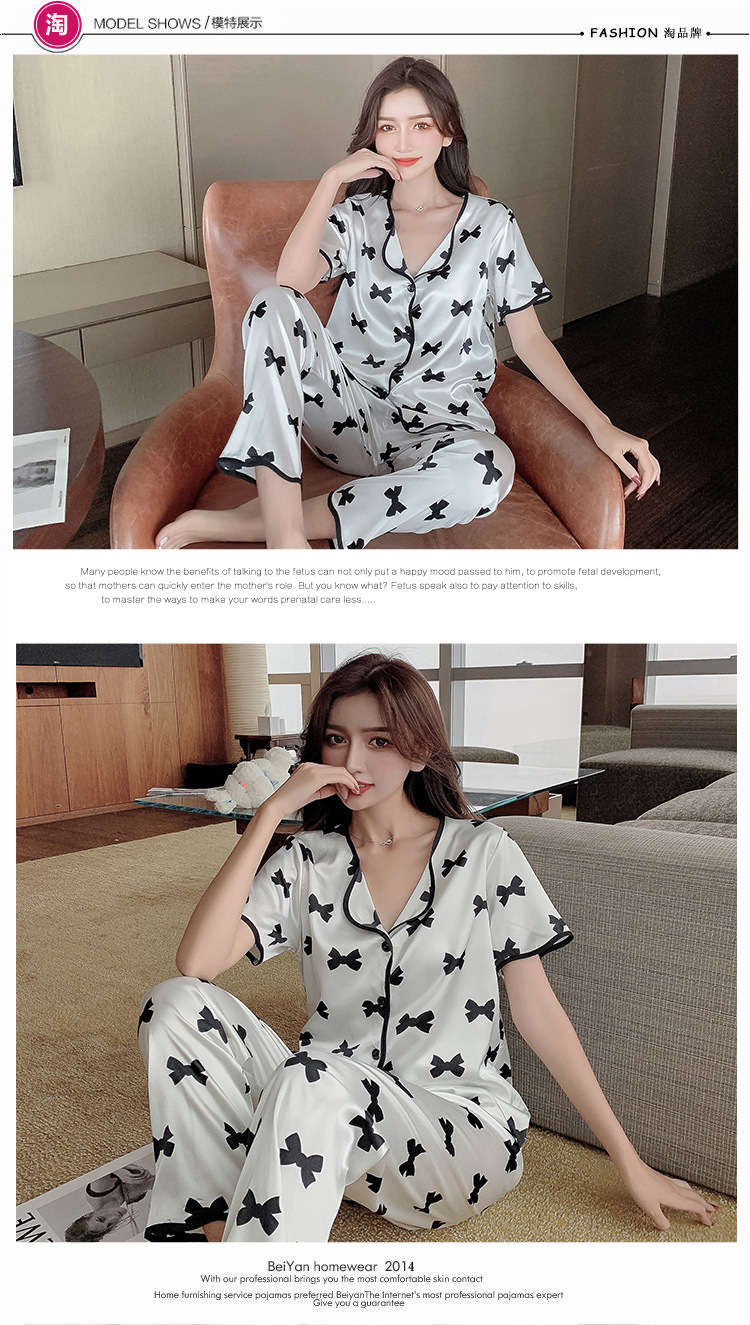 봄과 여름 인터넷 핫 보우 웨이브 가장자리 실크 잠옷스토어 가기