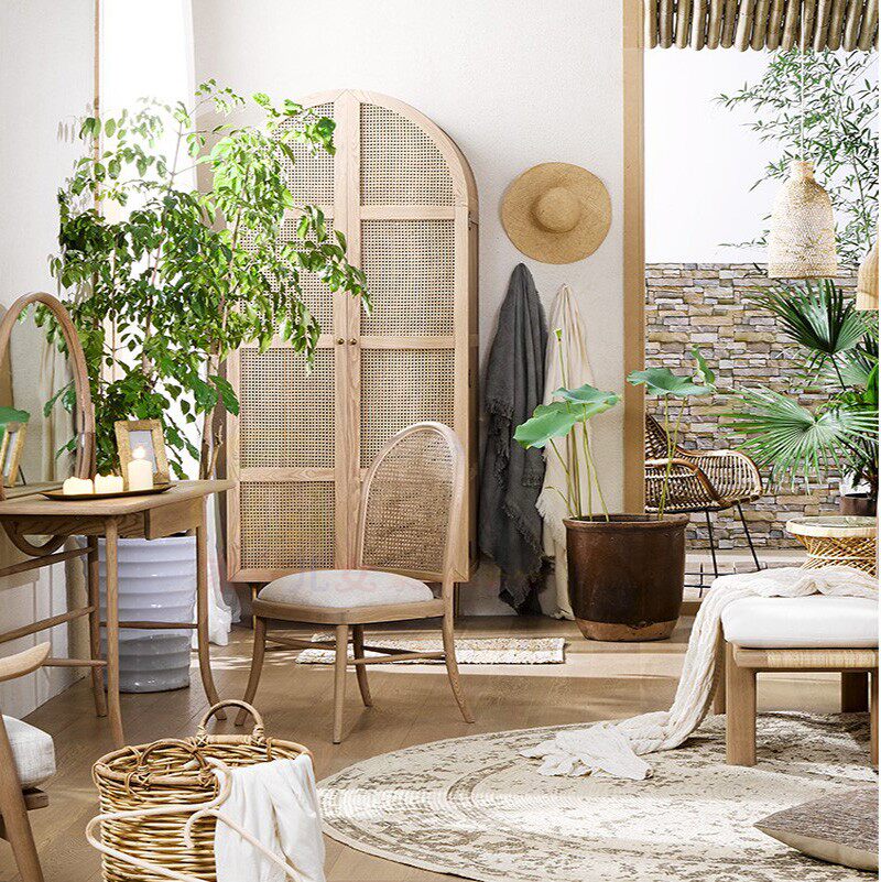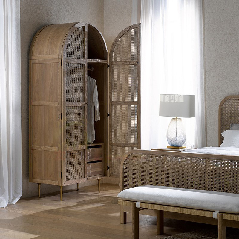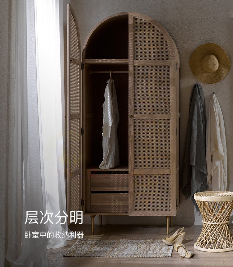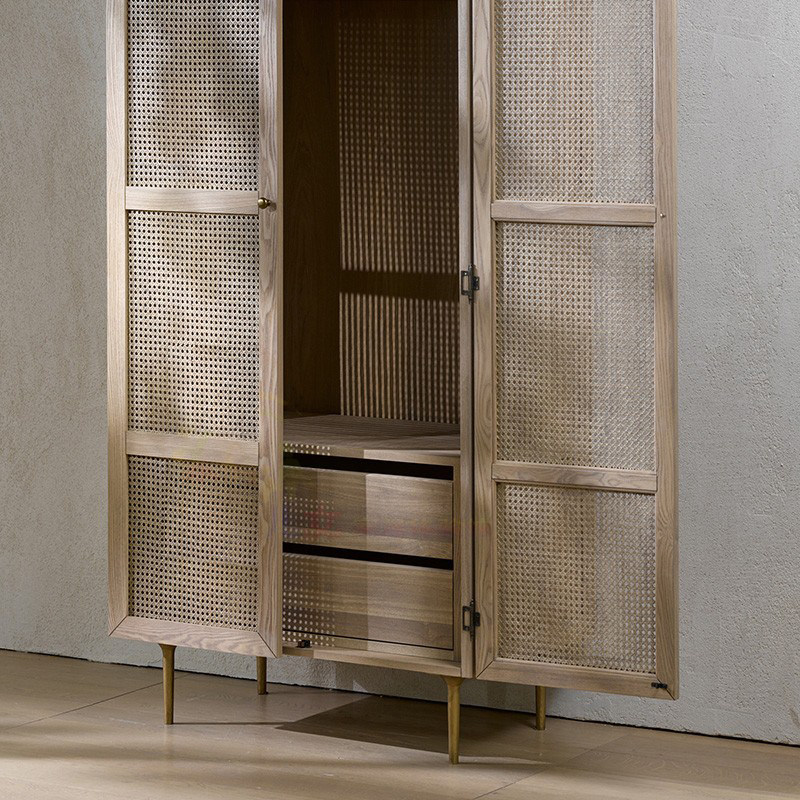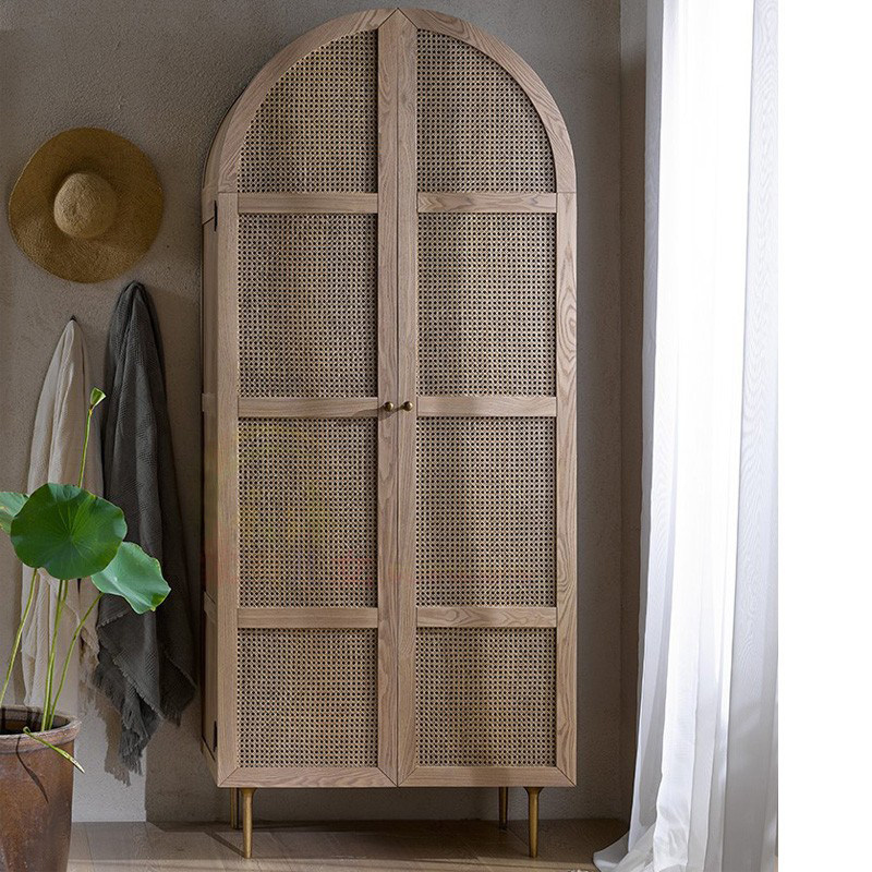 일본식 창조적 인 옷장 현대 간단한 등나무 2 도어 옷장 홈 침실 단단한 나무 보관 캐비닛 북유럽 스토리지 캐비닛