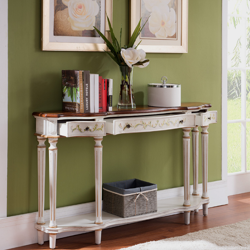 공장 도매 미국 국가 손으로 그린 입구 테이블 복도 통로 테이블 나무 입구 테이블 레트로 화이트 올드