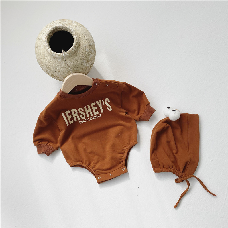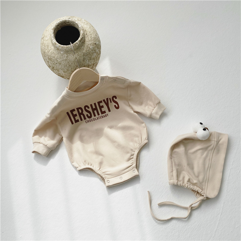 봄과 가을 새로운 한국식 베이비 크루넥 긴팔 알파벳 삼각형 등산 의류 아기 가방 방귀 모자