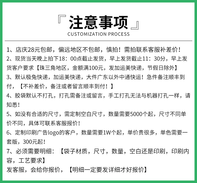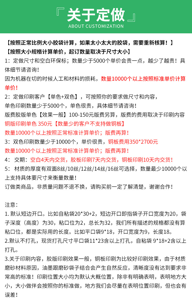 因为是机器操作,所以会有所误差,厚度误差0.02mm{2丝}之内,尺寸误差5mm之内,每包数量误差5个之内属于正常误差值,拍下请知悉!