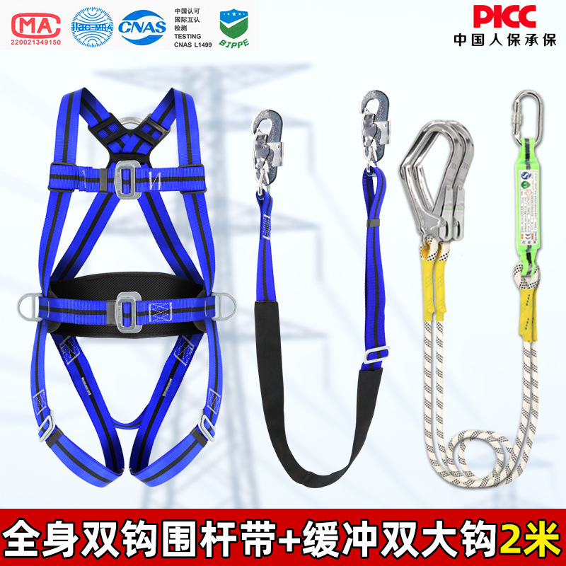 • 전신 전기 기술자 벨트 + 이중 후크 폴 벨트 + 완충 이중 대형 후크 2m
