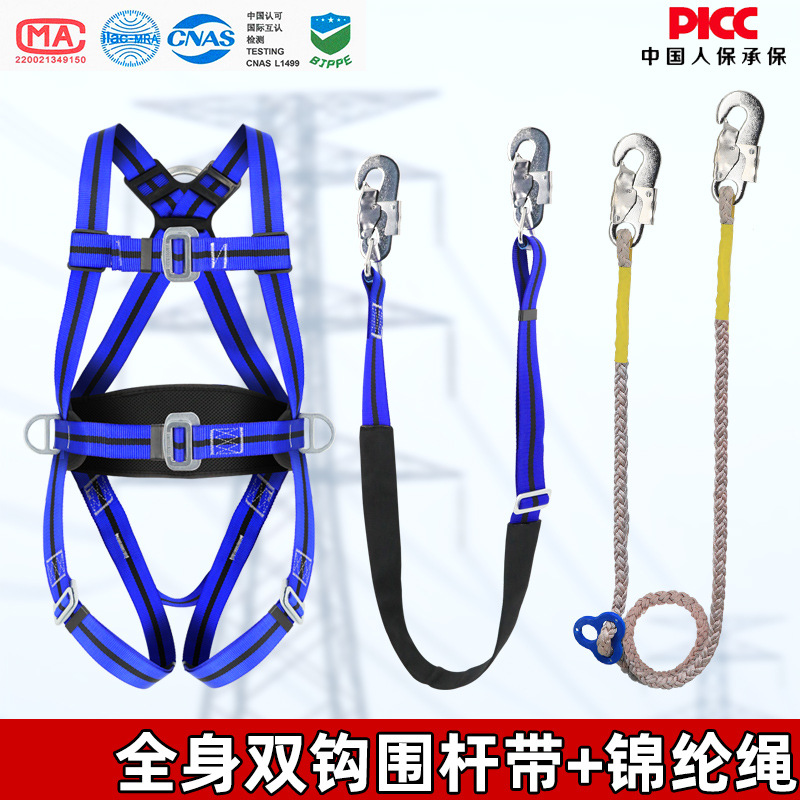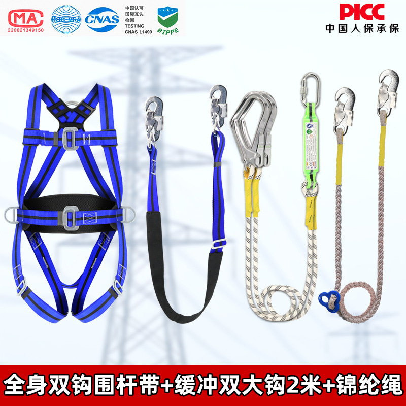 • 전신 전기 기술자 벨트 + 이중 후크 폴 벨트 + 완충 이중 대형 후크 2m + 나일론 로프