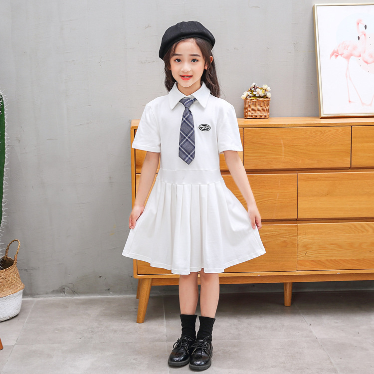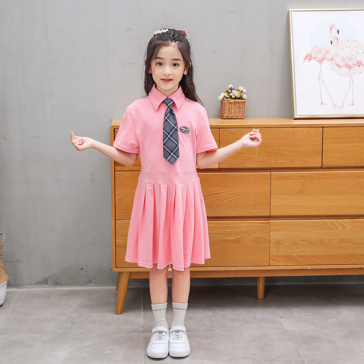여아 원피스 2022 여름 어린이 반팔 교복 긴 원피스 학생 면 스포츠 레저 대학 스타일 스커트스토어 가기