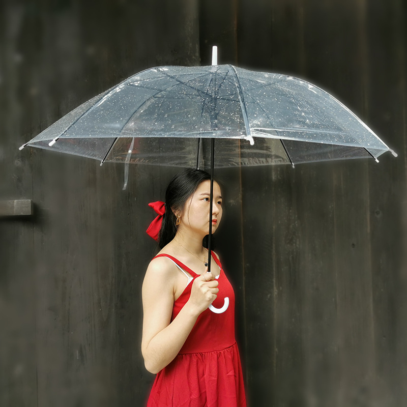 8 뼈 투명 우산 긴 손잡이 대형 단일 여성 흰색 Cinet 빨간 우산 반자동 강력한 학생 광고 우산스토어 가기