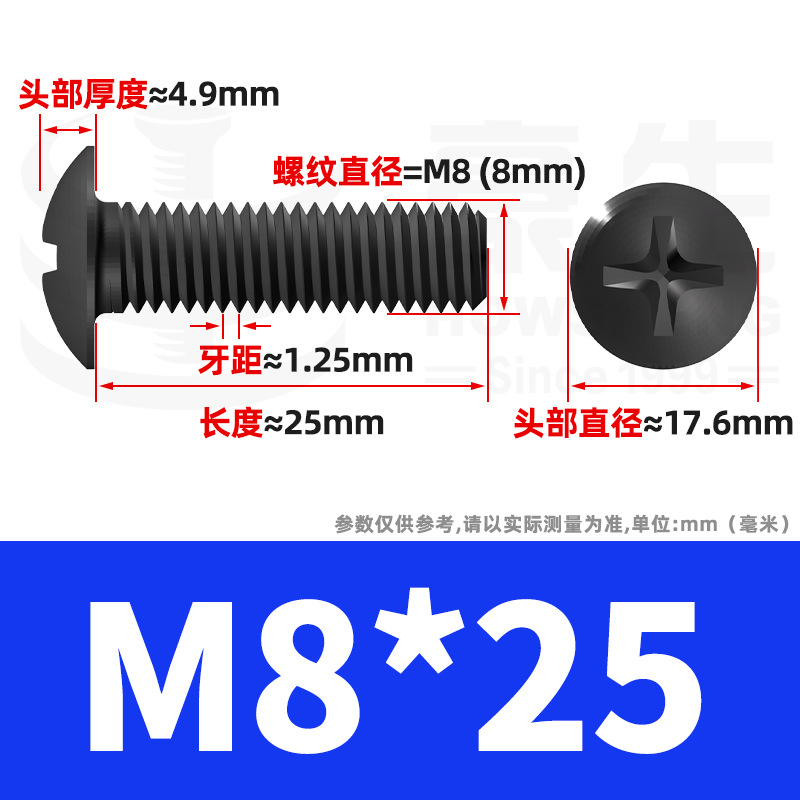304不锈钢镀黑锌十字大扁头机牙螺丝_03_15.jpg
