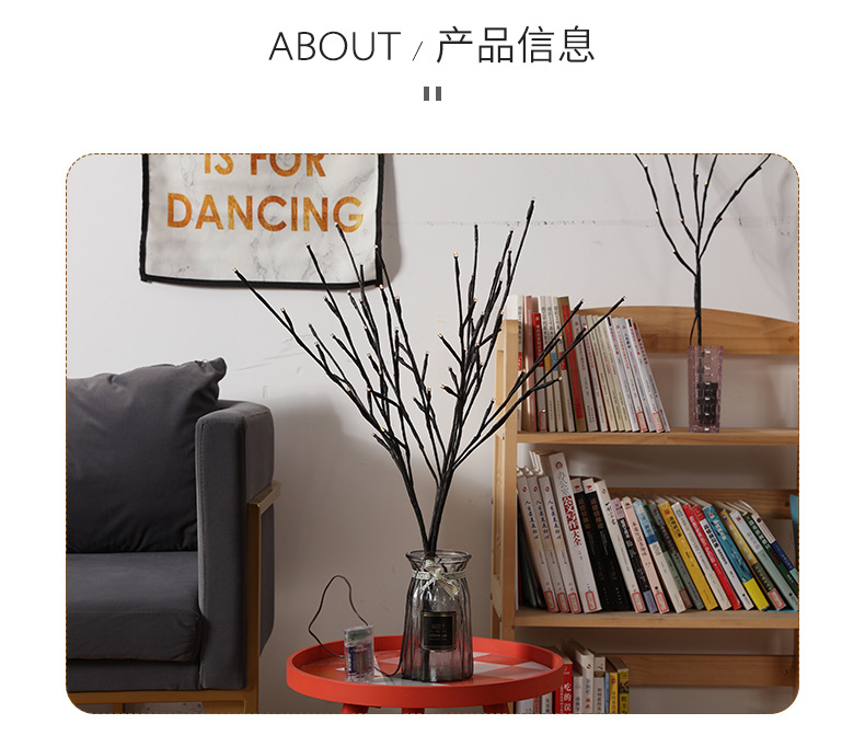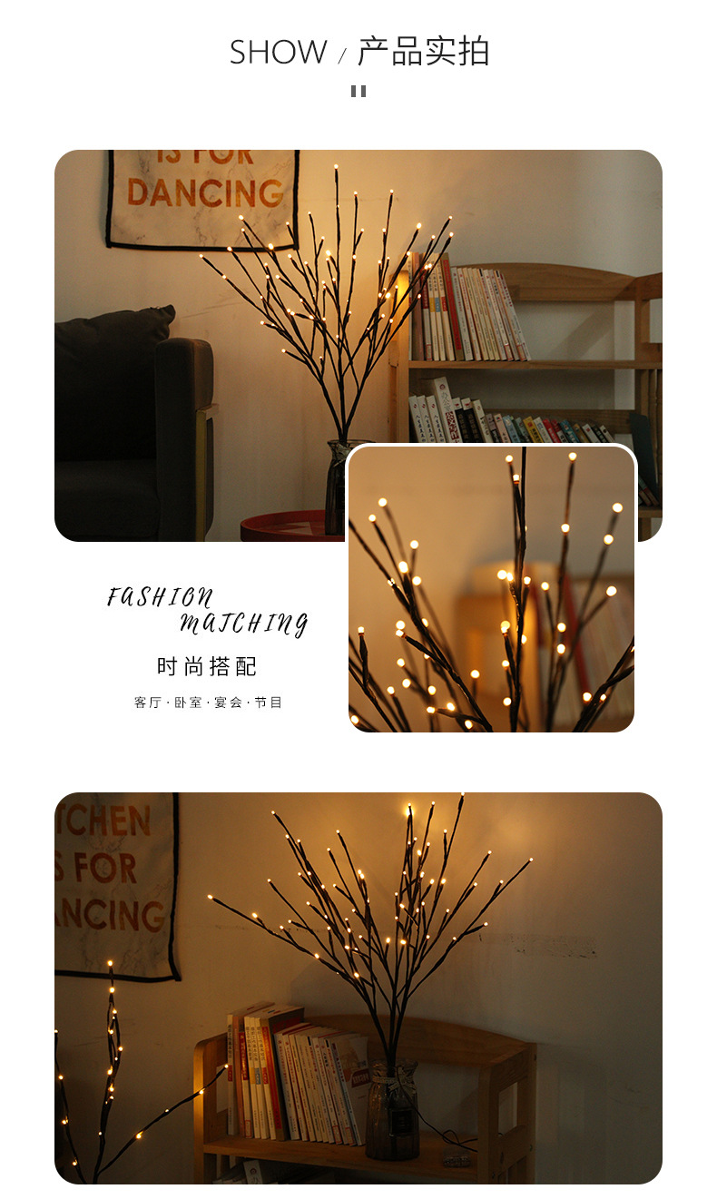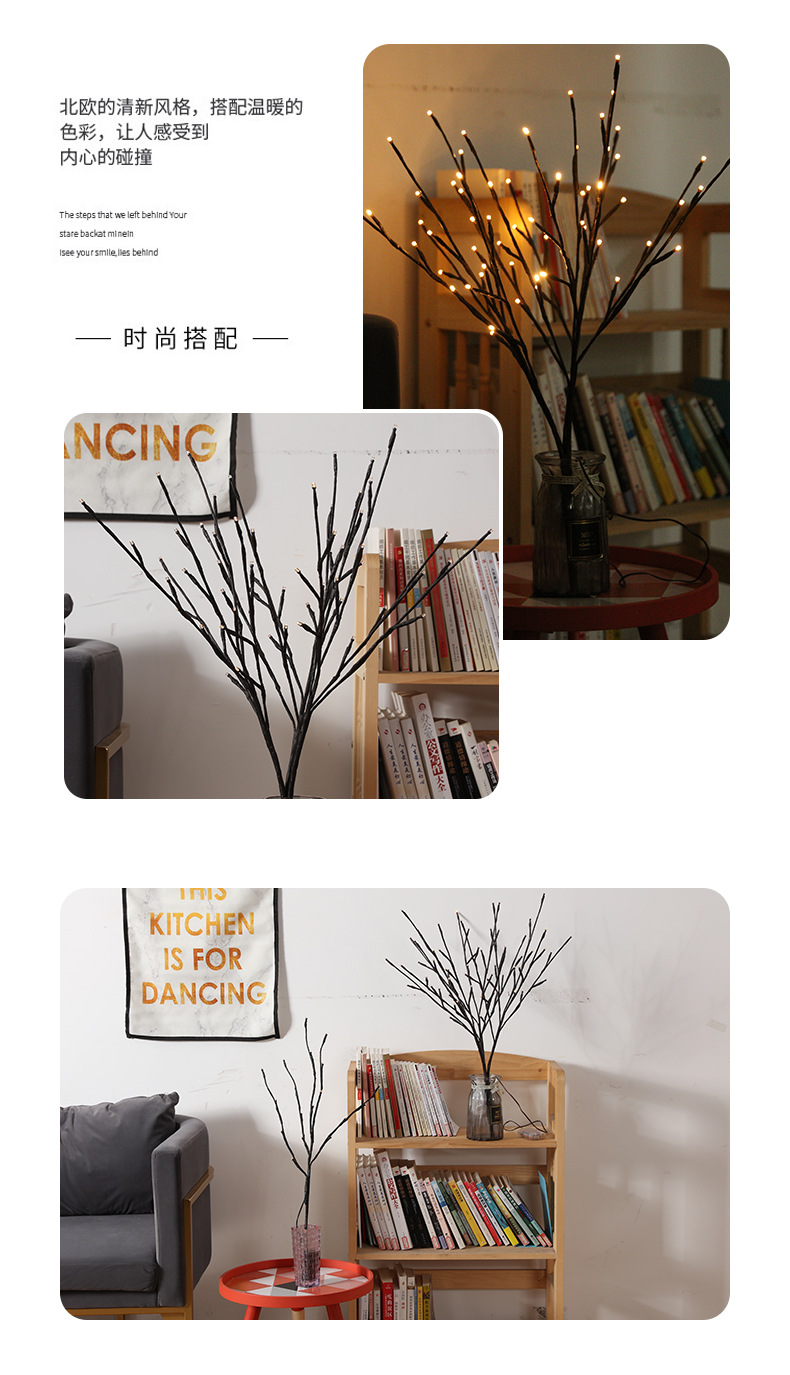 LED 시뮬레이션 분기 조명 북유럽 신선한 스타일 따뜻한 색상 바닥 조명 침실 방 휴일 장식 조명스토어 가기