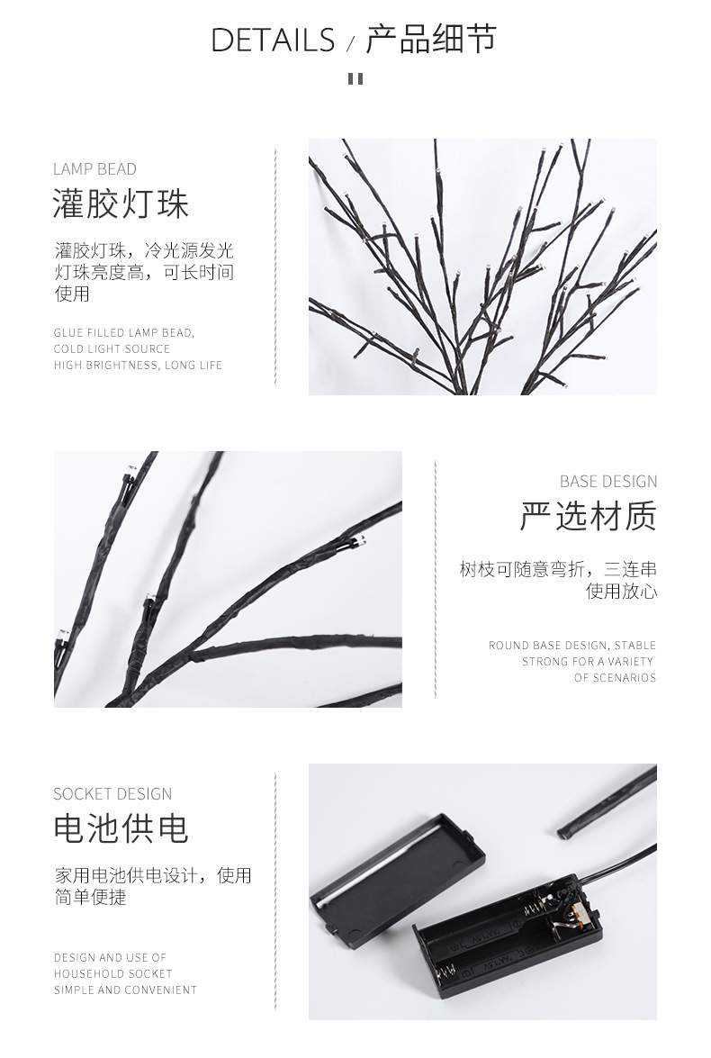 • 흰색 나뭇가지 조명(방수 배터리 박스)