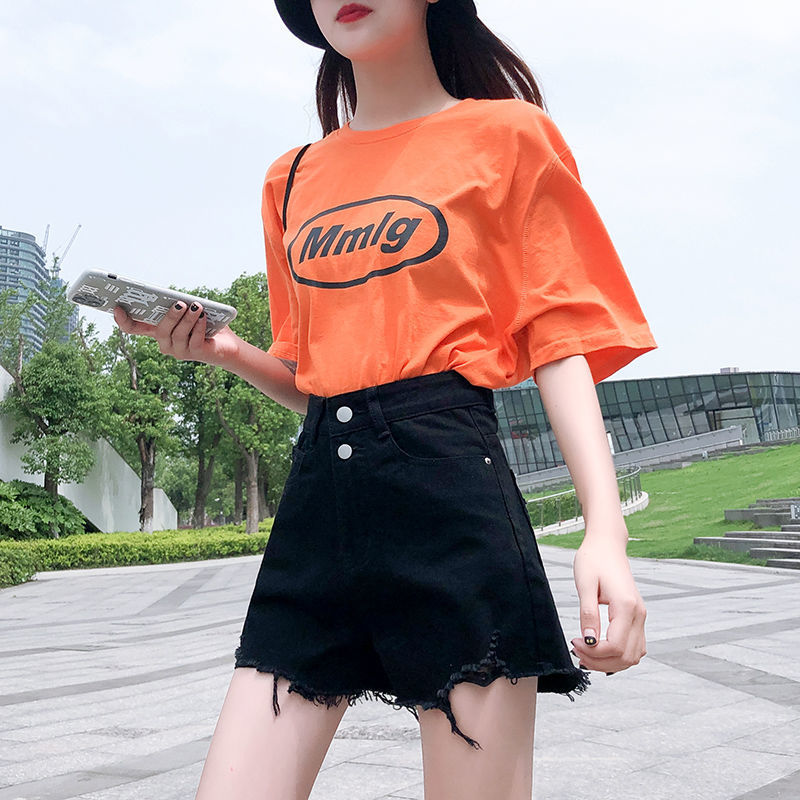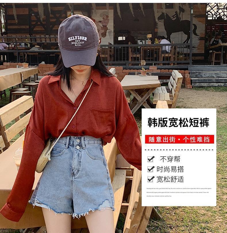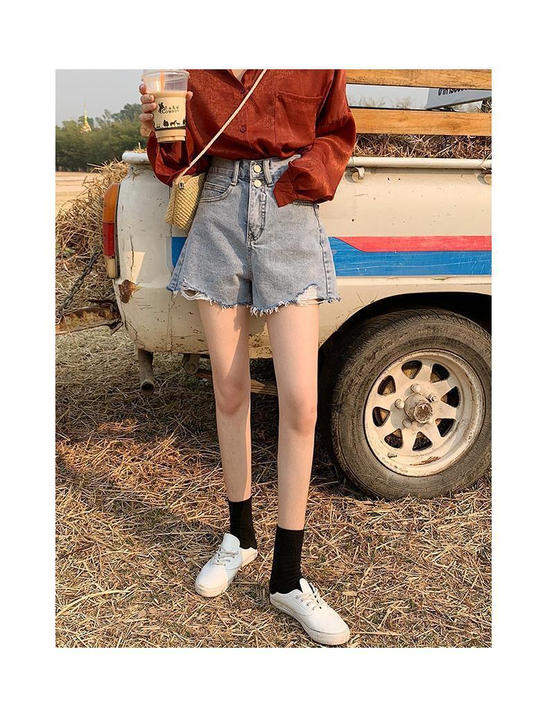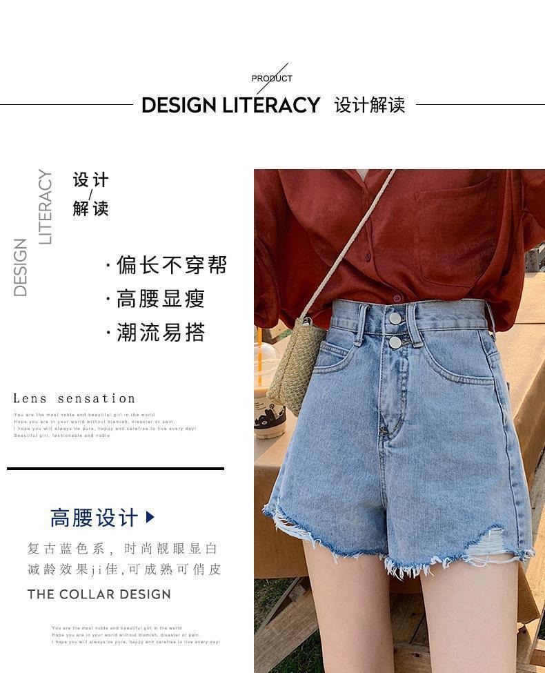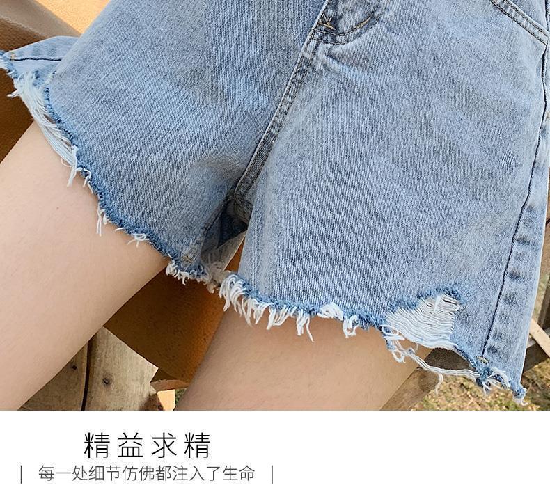 데님 반바지 여자의 2021 새로운 여름 얇은 찢어진 와이드 레그 슈퍼 핫 팬츠 느슨한 스파이스 걸 하이 웨이스트 a 자형 바지
