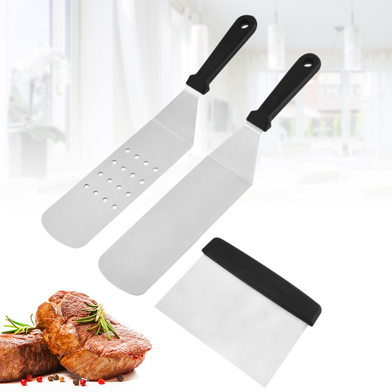 跨境供应 不锈钢烧烤工具套装 塑柄三件套烧烤铲用具 BBQ组合烤具