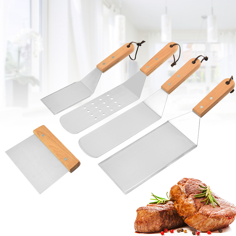 厂家直供不锈钢烧烤工具套装 榉木柄烧烤铲 铁板烧 料理铲 披萨铲