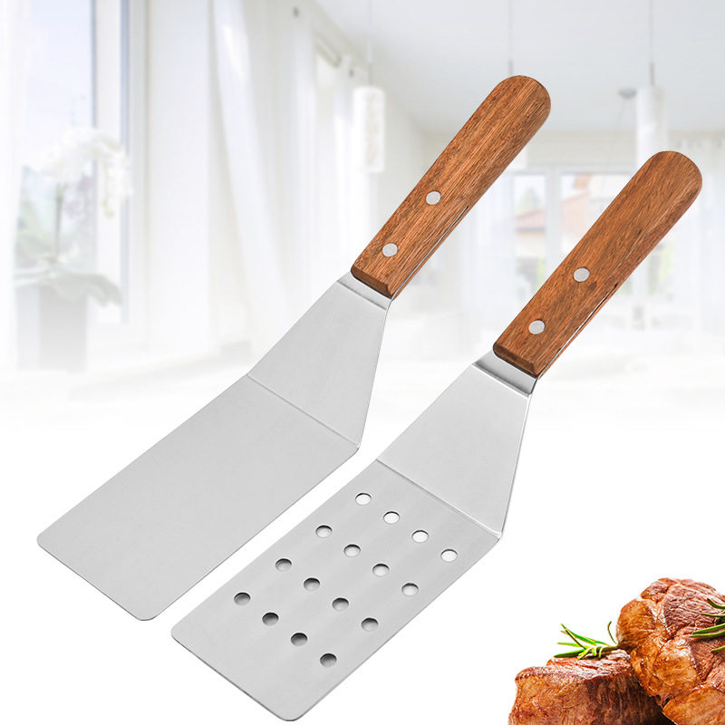不锈钢煎铲漏铲 木柄料理牛排煎鱼烧烤铲 披萨铲 煎饼铲 烘焙工具
