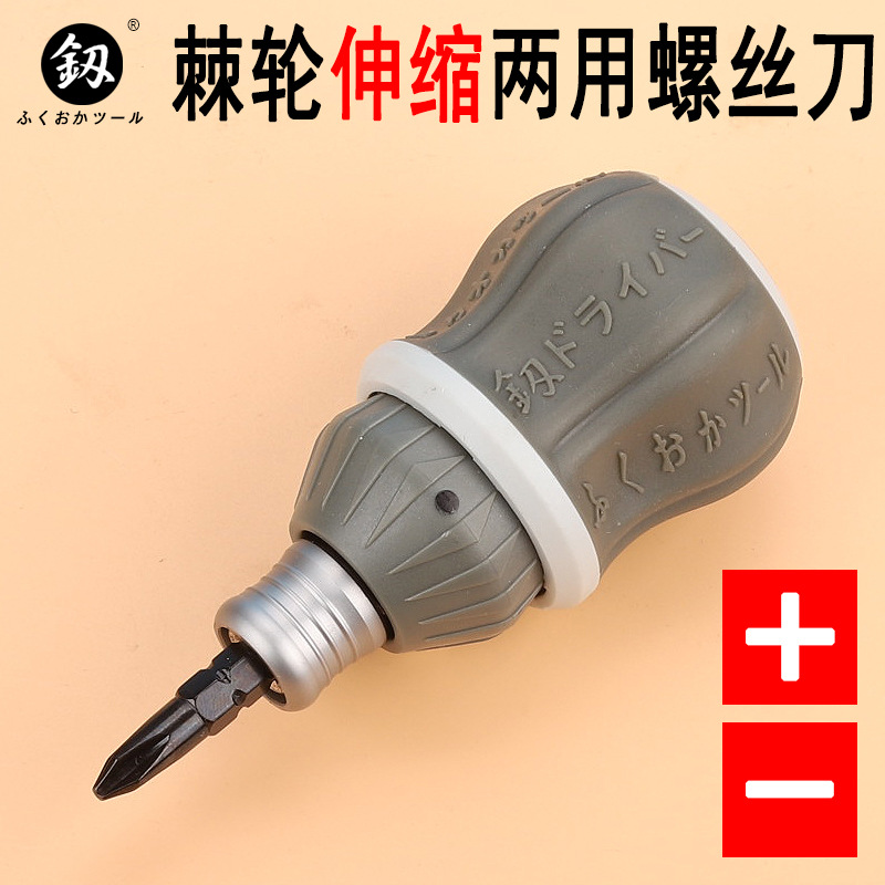 후쿠오카 짧은 손잡이 래칫 드라이버 FO-9006 개폐식 십자 드라이버 홈 수리