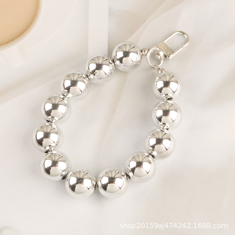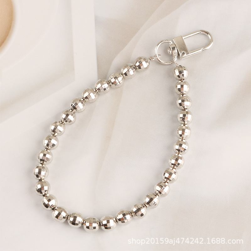 새로운 라운드 비드 열쇠 고리 창조적 인 금속 비드 체인 투명 모조 다이아몬드 체인 자동차 열쇠 액세서리 여성 가방 액세서리