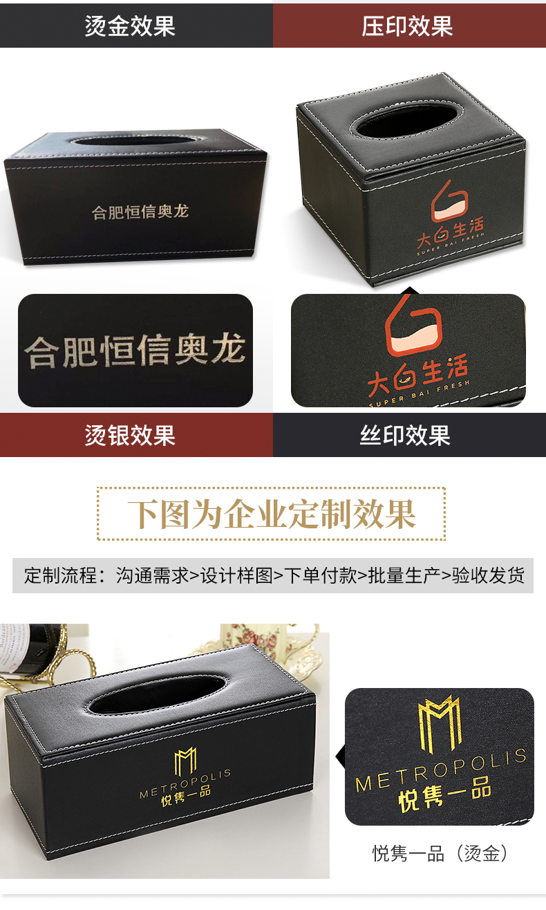 호텔 크리 에이 티브 가죽 티슈 박스 간단한 홈 오피스 선물 종이 상자 레스토랑 레스토랑 종이 상자 로고 인쇄