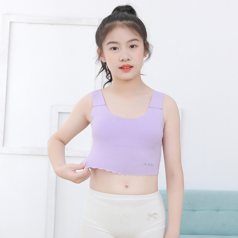 24 얇은 여아 속옷 중 작은 여아 솔리드 컬러 튜브 최고 병 작은 조끼 통기성 발달 브래지어 여학생