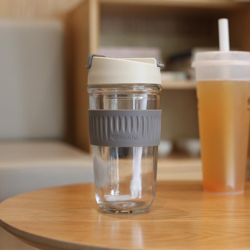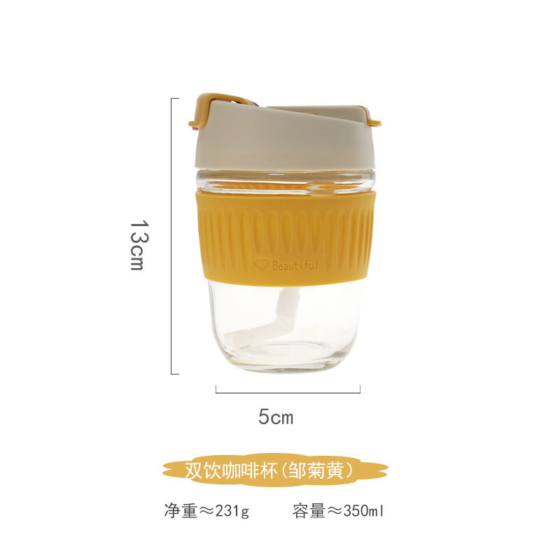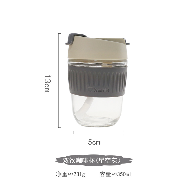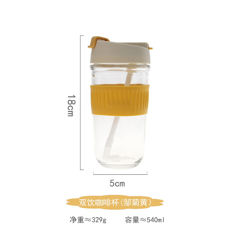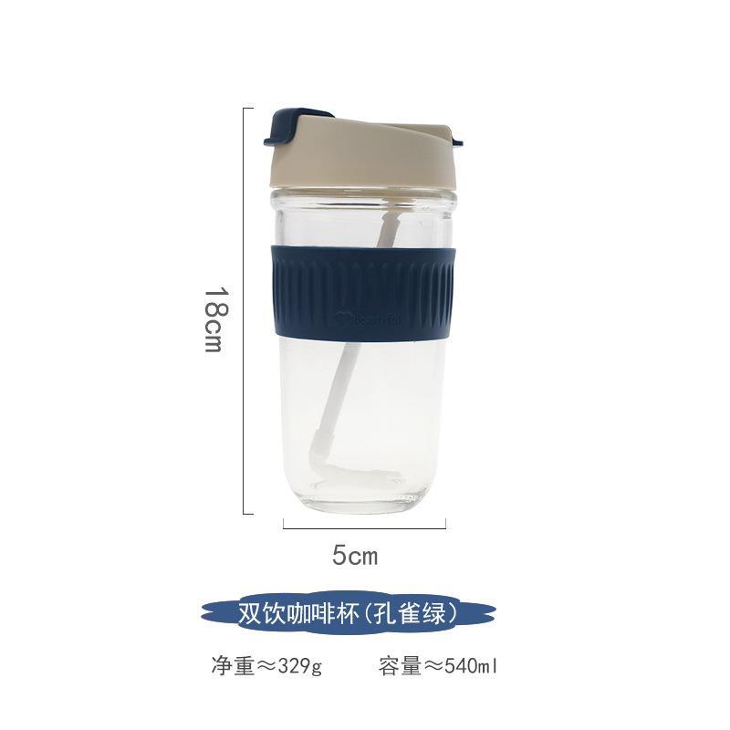 신스타일 더블 음료 커피 컵 동반 컵 INS 빨대 더블 음료 유리 컵 귀여운 휴대용 우유 컵 연인 컵스토어 가기