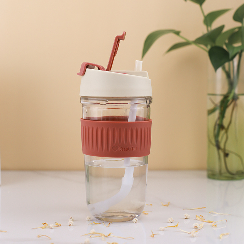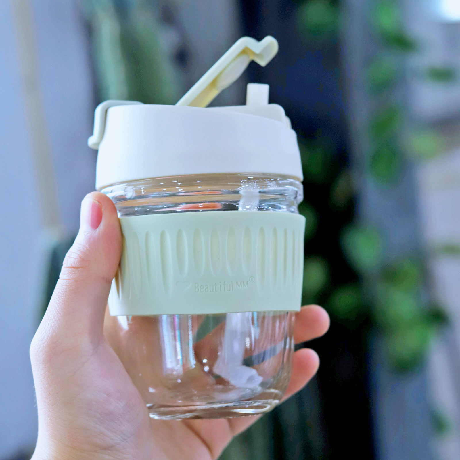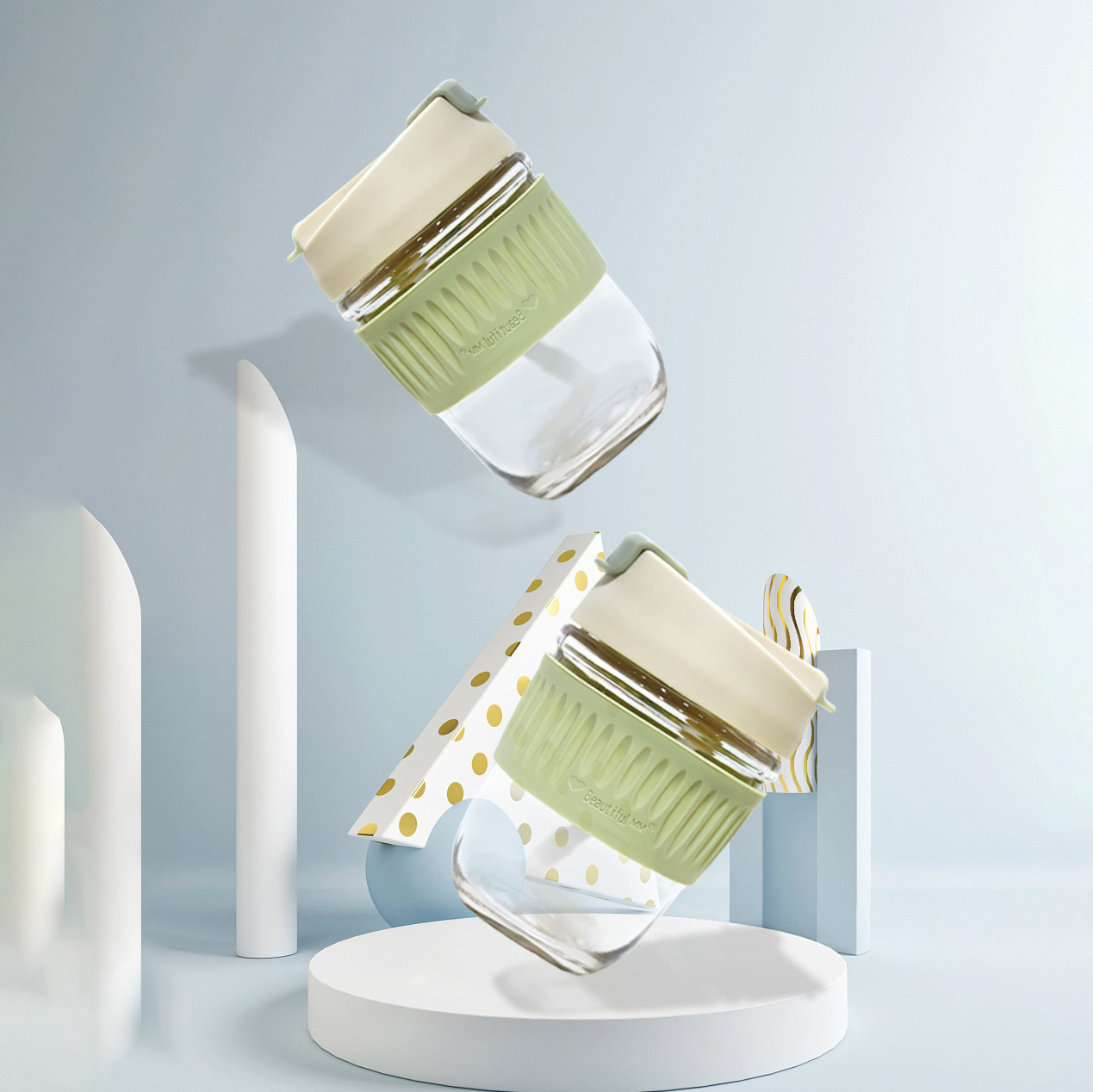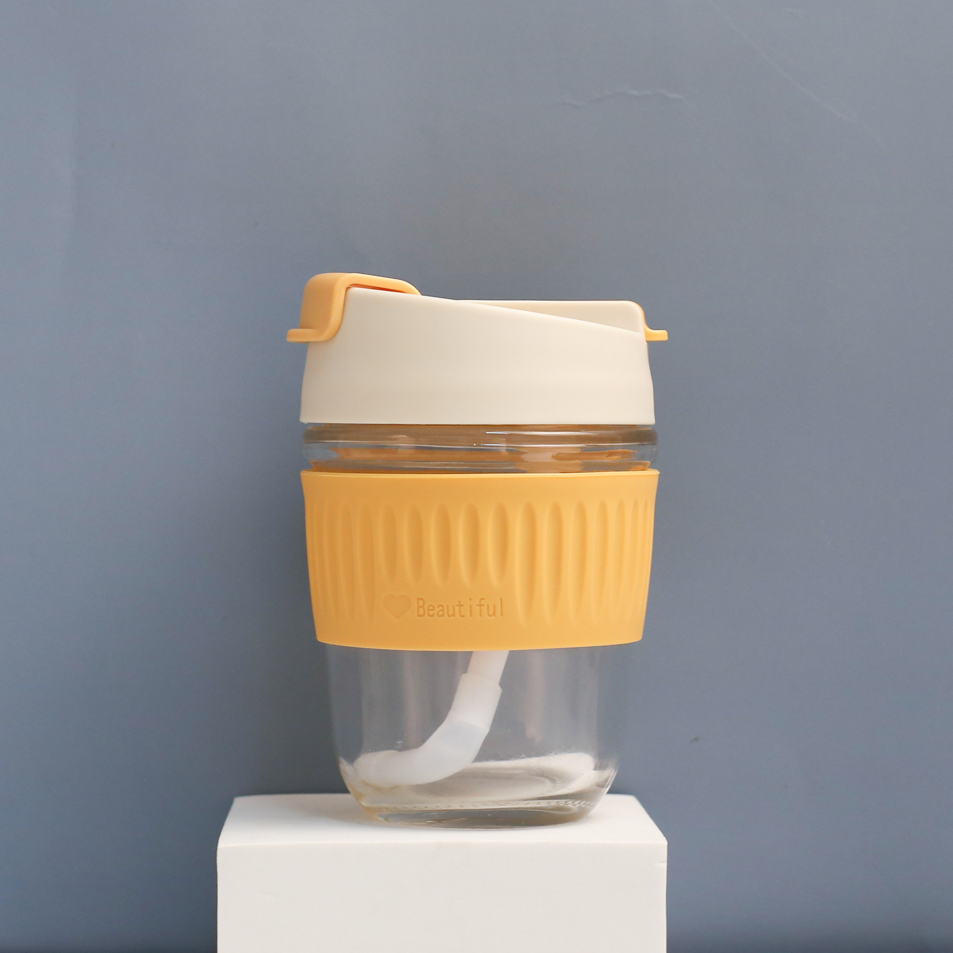 신스타일 더블 음료 커피 컵 동반 컵 INS 빨대 더블 음료 유리 컵 귀여운 휴대용 우유 컵 연인 컵스토어 가기