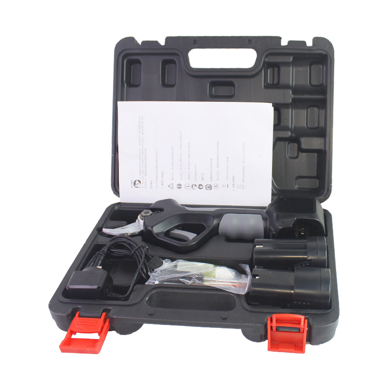 电动修枝剪套装为塑料盒包装,内垫泡棉,每套重量2kg。